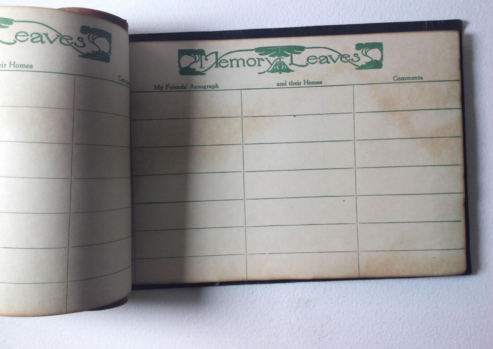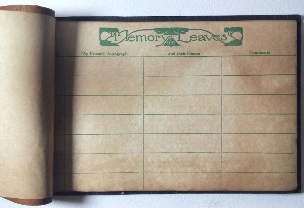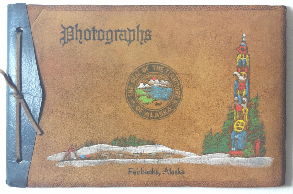 Photographs and Memory Leaves Booklet. The Seal of the Territory of Alaska. Alaska became a State in 1959. So this item pre dates that. Leather bound. Used, wear and discoloration on Memory leaves pages.15 pages for photographs and 3 pages for Autographs and other. Rear cover fold. See pics for better view of item for sale. If you have any concerns, contact me. Thanks for looking. X 34