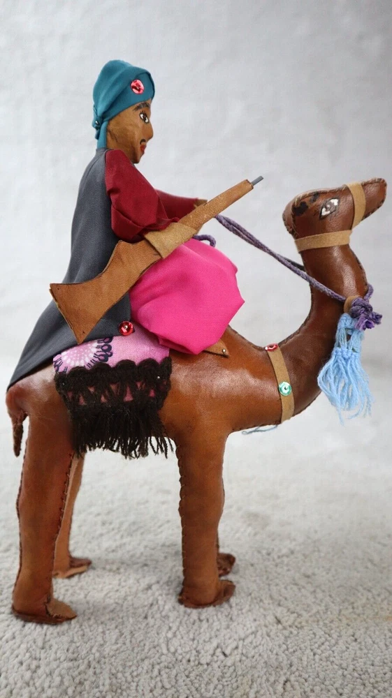 This exquisite figurine is a must-have for any collector. The leather bound wrapped camel figurine with rider is a stunning piece of art that will add a touch of elegance to any room. The multicolor camel is beautifully crafted with intricate details and reflects the style of India. Perfect for all occasions, this figurine will make a great addition to your collection of animals or unique finds. Made with high-quality leather, the figurine is durable and will withstand the test of time. Whether you're looking to decorate your home or office, this camel figurine is sure to impress. Please review all pictures for details as pictures are part of the description We are happy to combine shipping on multiple purchases! Please shop our other eBay store When I am listing pre-owned and vintage or antique china or crystal, I expect that there may be some minor use marks, pin point size marks, small light brown spots, utensil marks, or paint loss. This is normal for vintage merchandise. I try to describe anything that would be considered a major flaw, such as scratches, chips, crazing, or stains. ALL THE PROFITS COLLECTED GO DIRECTLY TO RALLY POINT RECOVERY IN ORDER TO HELP THOSE THAT ARE IN NEED. PLEASE FOLLOW OUR STORE FOR ANY NEW ITEMS WE MAY HAVE COME IN NEW, AS WE ARE LISTING NEW ITEMS DAILY. ALL ITEMS ARE SHIPPED WITH THE UTMOST CARE!!! THANK YOU FOR SHOPPING WITH US!!!