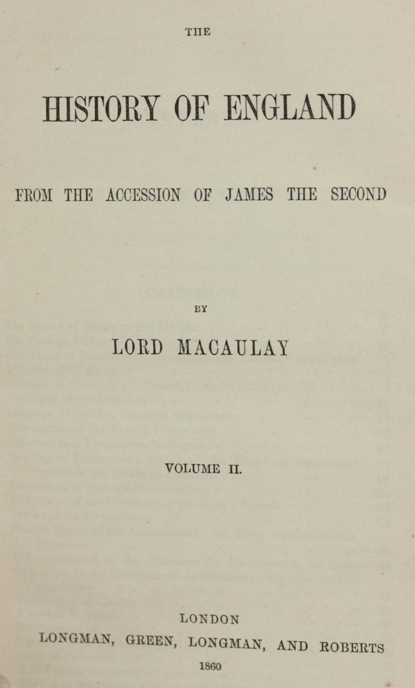 BOOK TITLE: HISTORY OF ENGLAND Vol II FROM THE ACCESSION OF JAMES THE SECOND Five volumes make up this set – this is ONE of three we are listing separately. AUTHOR: LORD MACAULAY PUBLISHER: LONGMAN, GREEN, LONGMAN AND ROBERTS PUBLISHED: 1860 CONTENTS: “The History of England from the Accession of James the Second (1848) is the full title of a five-volume work by Lord Macaulay (1800–1859) more generally known as The History of England. It covers the 17-year period from 1685 to 1702, encompassing the reign of James II, the Glorious Revolution, the co-regency of William III and Mary II, and up to William III's death. “ “An influential example of Whig interpretation of English history, written by Thomas Babington Macaulay – spanning from 1685 to1702” BINDING: Full leather hardcover edition. Gilded titles and decoration on the spine and gilded pattern to edges etc – see photos Marbled edges and end pages (af) EDITION: Unknown – someone else has listed one from 1850 as the 7 th edition – first edition appears to be 1848. NUMBER OF PAGES : 686 including Index LANGUAGE: English ILLUSTRATED: No but possibly had a front plate. CONDITION: Exterior shows it is antique especially the spine that has had the most exposure to air, light etc but overall it is good to very good with no damage. No hand written dedications etc No foxing on any pages I found. Looks clean and almost defect free on the printed pages. Some age related marks to leather binding but not a lot. Edges of book has expected level of bruising with the corner bent in slightly from the many decades of storage and/or viewing but nothing too bad – see photos. The first marbled page has partly torn away from the binding – not fully but about 2/3 off so care needs to be taken. The next page, which is the first title page, is not torn but is a little loose but isn’t falling out as such - there could have been a plate here that has been removed- not sure. DIMENSIONS: It measures approximately: 22cm high x 14.5 cm wide x 4cm thick OTHER COMMENTS: Apparently some later historians consider this account of English history to be quite biased. *** This book was part of our ‘library’ that we have moved around a number of times – need to down size now as we have reached ‘that’ time of life and so we are hoping these fascinating books will find a new home to bring pleasure and enjoyment. Weight is: 1030 grams >>>>>> 24B <<<<<< We guarantee our descriptions are accurate and our prices competitive. Please bear in mind that all our items are antique or vintage and may have some age related issues. If you like your item please leave us feedback and we will respond immediately. If, for any reason, you are unhappy, PLEASE come back to us so we can try and resolve any issue you might have. THANK YOU >>>>>><<<<<< Freight - Please be aware that some Postage Fees may be incorrect as many invoices are estimated by eBay. If so: We refund unused balance when you are overcharged, If you are undercharged we don't ask for more. Any questions or query's please contact so we can look into it. Australian freight is as per Australia Post domestic freight charges. Domestic insurance is $2.50 for the first $200.00 and $2.50 for each succeeding $100.00 or part thereof. Above $500.00 please add $2.95 for compulsory signature. We will gladly combine shipping where possible. International Buyers Please Note WE HAPPILY SHIP TO MOST INTERNATIONAL DESTINATIONS IF THE ITEM IS VALUED AT $100 AUD or OVER IT HAS TO BE INSURED. International insurance is $4.00 for the first $200.00 and $4.00 for each other $100 or part thereof. Above $500.00 please add $5.50 for compulsory signature. We will gladly combine shipping where possible. Import duties, taxes and charges are not included in the item price or shipping charges. These charges are the buyers responsibility. Please check with your country's customs office to determine what these additional costs will be prior to bidding/buying. >>>>>><<<<<< THANK YOU >>>>>><<<<<< kollectik 1 (Kollectik Pty. Ltd.) has been trading successfully on eBay for a very long time now and hopefully will be for a long time to come (please see our feedback) Between 2007 and 2018 we were also The Manly Antique Centre which has now sadly closed as our old building was sold to Developers and is now a block of units....... of course. >>>>>><<<<<<
