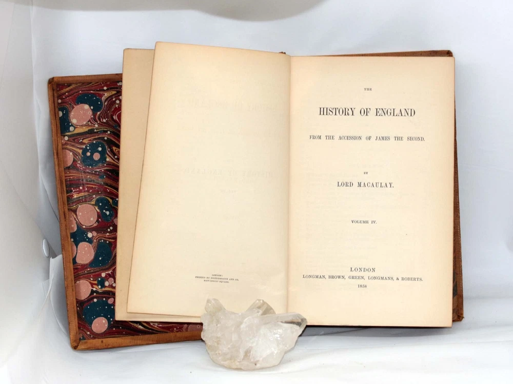 BOOK TITLE: HISTORY OF ENGLAND Vol IV FROM THE ACCESSION OF JAMES THE SECOND Five volumes make up this set – we are listing Volumes I, II and this one separately as this is slightly earlier than the other 2. AUTHOR: LORD MACAULAY PUBLISHER: LONGMAN, GREEN, LONGMAN AND ROBERTS PUBLISHED: 1858 CONTENTS: “The History of England from the Accession of James the Second (1848) is the full title of the five-volume work by Lord Macaulay (1800–1859) more generally known as The History of England. It covers the 17-year period from 1685 to 1702, encompassing the reign of James II, the Glorious Revolution, the co-regency of William III and Mary II, and up to William III's death. “ “An influential example of Whig interpretation of English history, written by Thomas Babington Macaulay – spanning from 1685 to1702” BINDING: Full leather hardcover edition. Gilded titles and decoration on the spine and gilded pattern to edges etc – see photos Marbled edges and end pages EDITION: Unknown – someone else has listed one from 1850 as the 7 th edition – first edition appears to be 1848. NUMBER OF PAGES : 829 including Index LANGUAGE: English ILLUSTRATED: No CONDITION: AS FOUND Front board is detached. Some age related marks to leather binding, mainly on the front but the back is good. Exterior shows it is antique especially the spine that has had the most exposure to air, light etc. No hand written dedications etc No foxing on any pages I found. Looks clean and almost defect free on the printed pages. Edges of book has expected level of bruising with the corners bent in slightly from the many decades of storage and/or viewing – see photos. The first marbled page has partly torn away from the binding – not fully but about 1/3 up from the bottom so care needs to be taken. It’s possible there was originally a front plate but I don’t know for sure. DIMENSIONS: It measures approximately: 22cm high x 14.5 cm wide x 5cm thick OTHER COMMENTS: Apparently some later historians consider this account of English history to be quite biased. *** This book was part of our ‘library’ that we have moved around a number of times – need to down size now as we have reached ‘that’ time of life and so we are hoping these fascinating books will find a new home to bring pleasure and enjoyment. Weight is: 1200 grams >>>>>> 26B <<<<<< We guarantee our descriptions are accurate and our prices competitive. Please bear in mind that all our items are antique or vintage and may have some age related issues. If you like your item please leave us feedback and we will respond immediately. If, for any reason, you are unhappy, PLEASE come back to us so we can try and resolve any issue you might have. THANK YOU >>>>>><<<<<< Freight - Please be aware that some Postage Fees may be incorrect as many invoices are estimated by eBay. If so: We refund unused balance when you are overcharged, If you are undercharged we don't ask for more. Any questions or query's please contact so we can look into it. Australian freight is as per Australia Post domestic freight charges. Domestic insurance is $2.50 for the first $200.00 and $2.50 for each succeeding $100.00 or part thereof. Above $500.00 please add $2.95 for compulsory signature. We will gladly combine shipping where possible. International Buyers Please Note WE HAPPILY SHIP TO MOST INTERNATIONAL DESTINATIONS IF THE ITEM IS VALUED AT $100 AUD or OVER IT HAS TO BE INSURED. International insurance is $4.00 for the first $200.00 and $4.00 for each other $100 or part thereof. Above $500.00 please add $5.50 for compulsory signature. We will gladly combine shipping where possible. Import duties, taxes and charges are not included in the item price or shipping charges. These charges are the buyers responsibility. Please check with your country's customs office to determine what these additional costs will be prior to bidding/buying. >>>>>><<<<<< THANK YOU >>>>>><<<<<< kollectik 1 (Kollectik Pty. Ltd.) has been trading successfully on eBay for a very long time now and hopefully will be for a long time to come (please see our feedback) Between 2007 and 2018 we were also The Manly Antique Centre which has now sadly closed as our old building was sold to Developers and is now a block of units....... of course. >>>>>><<<<<<