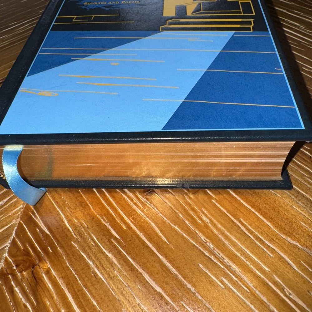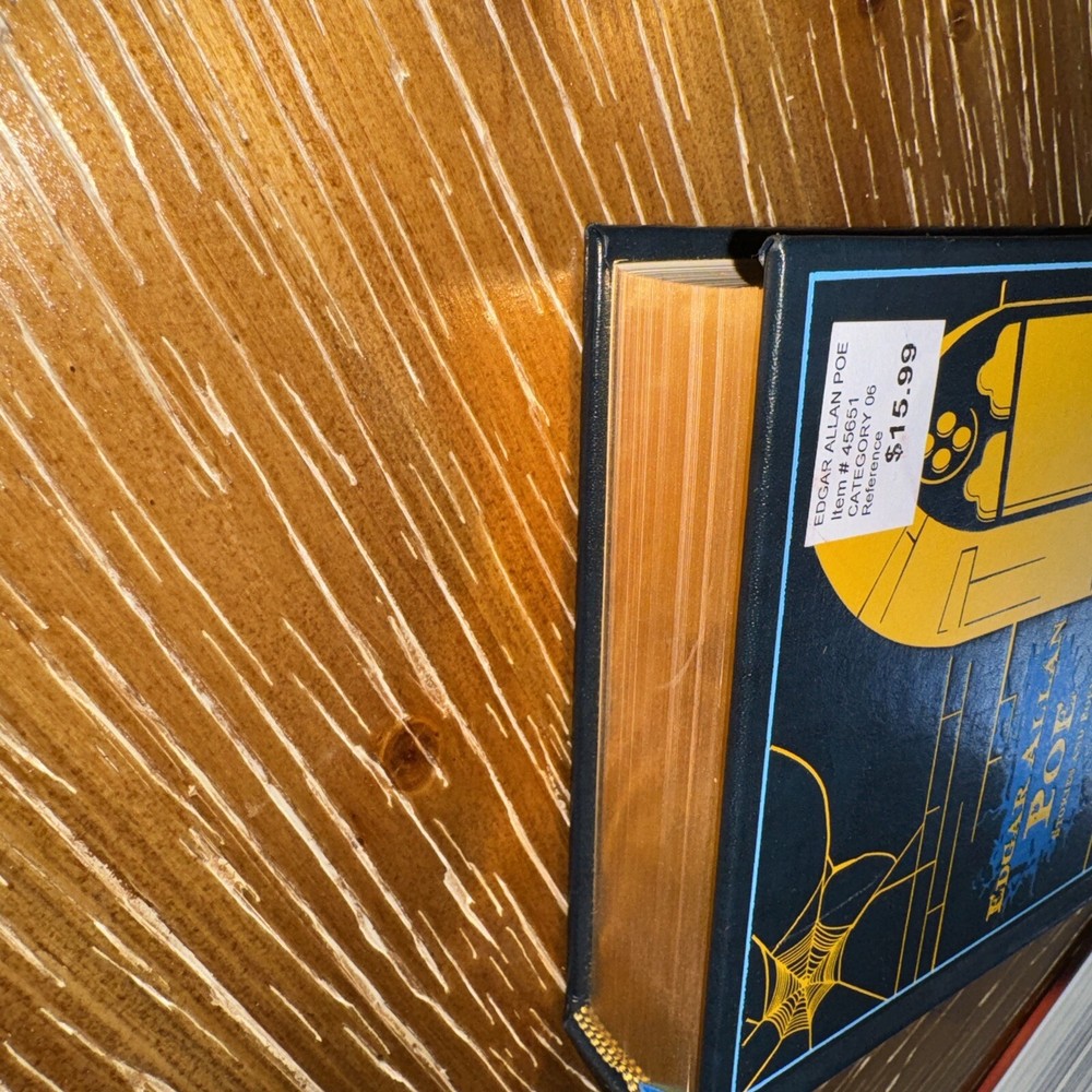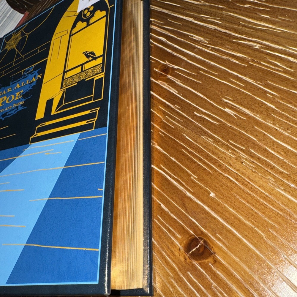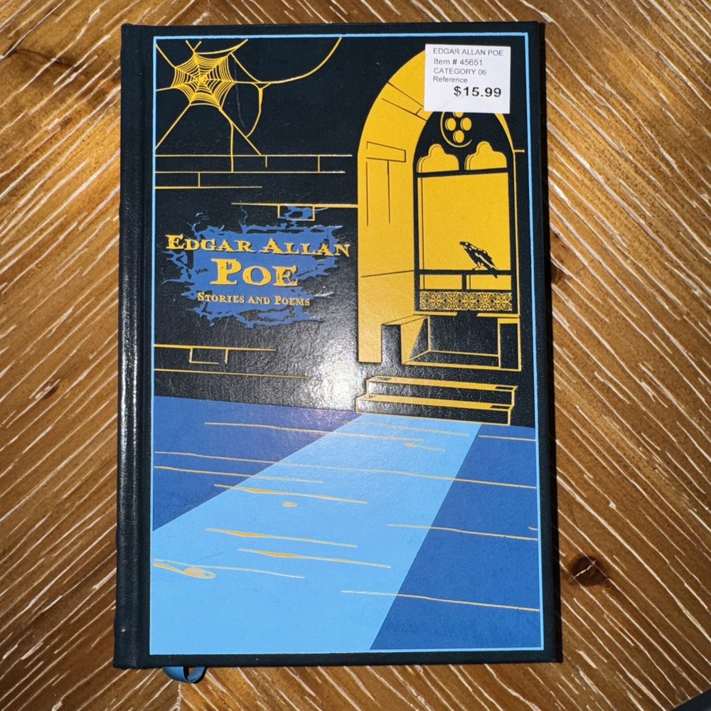 This leather-bound book features a collection of Edgar Allan Poe's classic works, including both stories and poems. The book is beautifully crafted with a height of 9.2 inches, width of 6.2 inches, and a weight of 37.7 ounces, making it a substantial addition to any book collection. Published in 2011 by Printers Row Publishing Group, this book features 744 pages of English text. The book's cover is made of high-quality leather, adding a touch of elegance to the overall design. Whether you're a fan of classic literature or just looking for a new addition to your bookshelf, this Edgar Allan Poe collection is a must-have. Non-Smoking Entertainment or Storage It’s been on a box since it was purchased. Unread No missing pages No highlighted Free Shipping