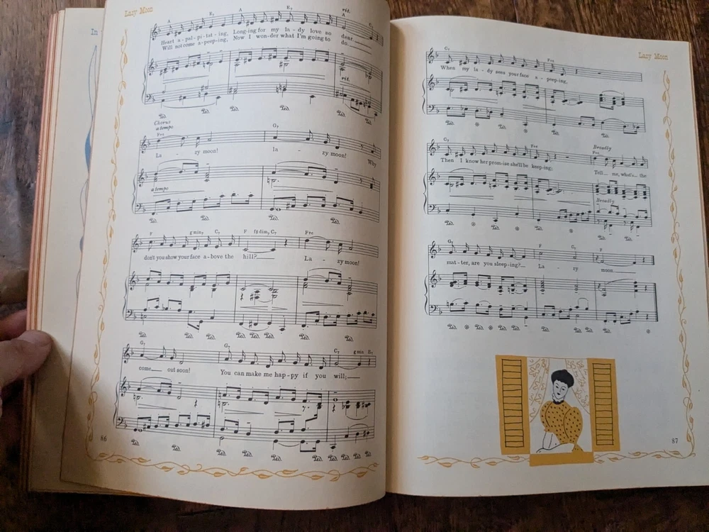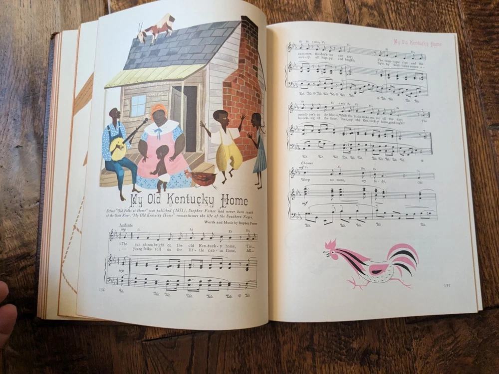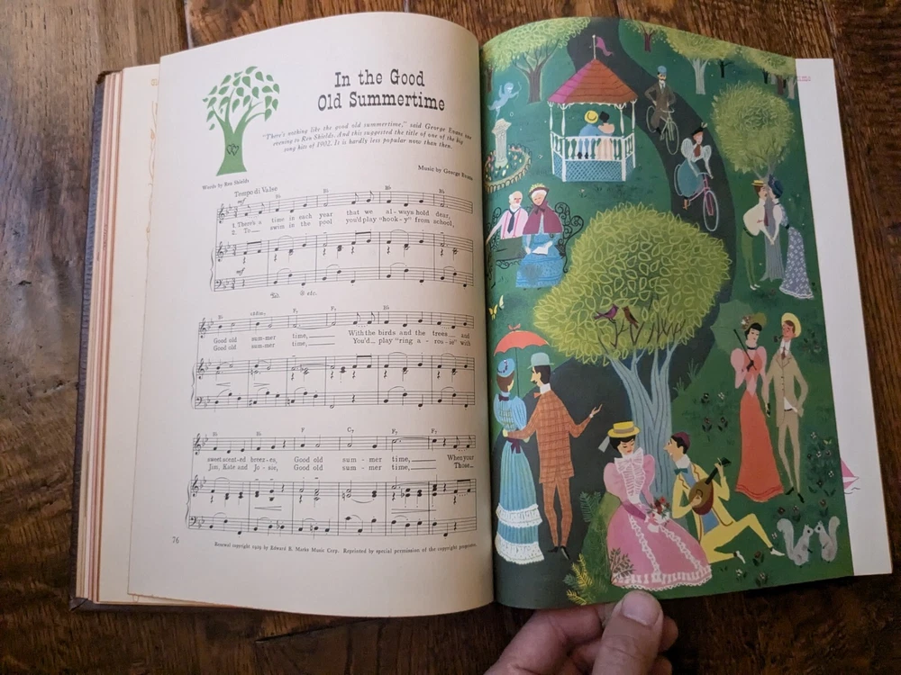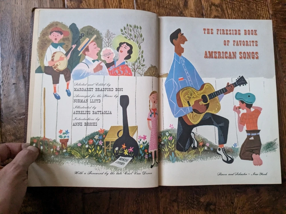 Vintage Deluxe Leather bound Fireside Book of Favorite American Songs. Published by Simon and Schuster in the United States in 1952, by Margaret Bradford Boni. Rare edition in leather binding with gold gilt to cover, spine and all outer page edges. Overall very good to excellent condition for it's age with some minor wear to spine at the edges and corners of boards. Interior is excellent. Whether you're a collector or simply looking for a unique addition to your music library, this Leather bound Fireside Book of Favorite American Songs is a timeless piece that must not be missed. A must-have for any music lover. Featuring a collection of beloved Americana and country hits, this song book is perfect for intermediate players looking to expand their repertoire. The book is a duo format, making it ideal for piano players who enjoy accompanying others. See photos