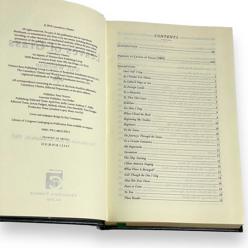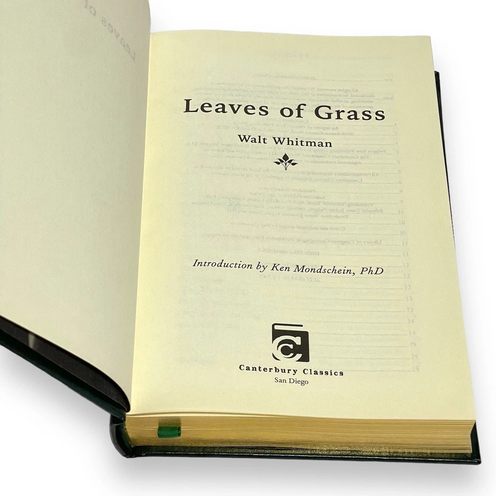 Leaves Of Grass Walt Whitman Gilt Leather Hardcover 2018 Canterbury Classic Gold PHOTOS ARE OF ACTUAL ITEM Small flaw on upper corner pages (see 2 photos) Beautiful book! Gold inlay picture and text (gold or gold color) Tight binding “Do I contradict myself? Very well, then, I contradict myself. I am large, I contain multitudes.” Check out our store for more great finds!