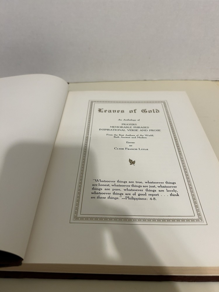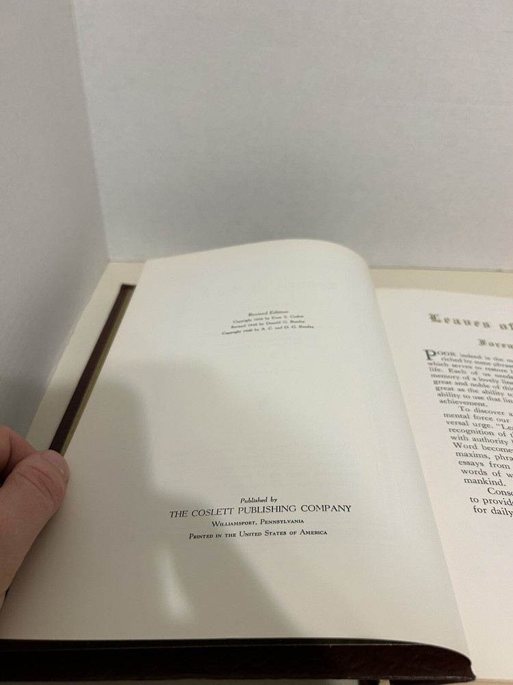 This listing is for the Vintage Book: Leaves of Gold. 1948. Nice Condition. Book is in nice condition with few marks. Refer to pics for condition. Please pay via PayPal within 24hrs of auction close. Only bidders in the lower 48 states please. I ship via USPS media and will track your package. I will ship within 3 days that payment is received. Let me know if I can answer any more questions for you. Thanks for looking!
