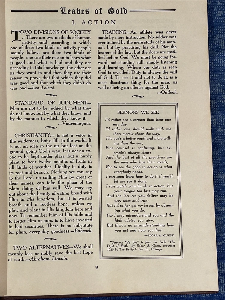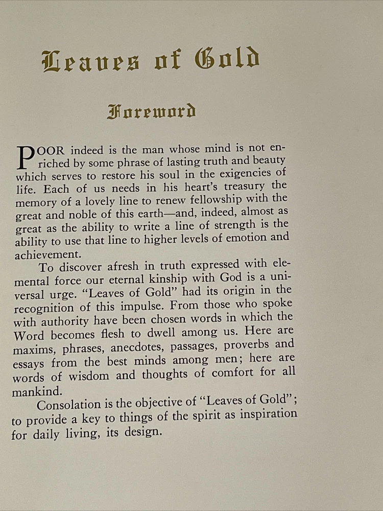 Vintage Antique Book, Very Clean, Leaves of Gold - An Anthology of Prayers, Memorable Phrases, Verse & Prose 1948. No Writing, please See Pictures, age appropriate wear on edges. (Clo)