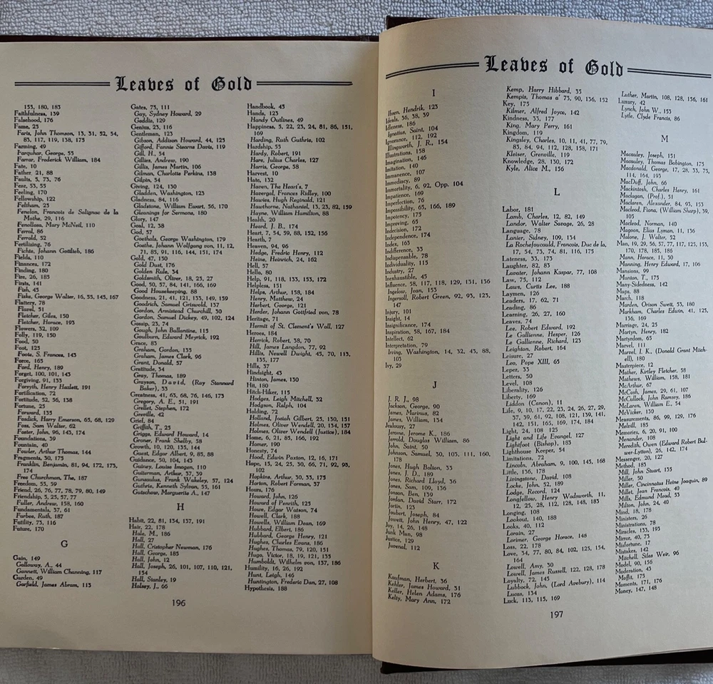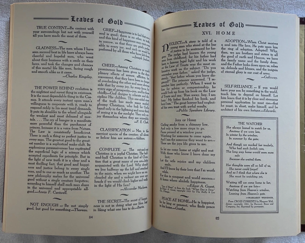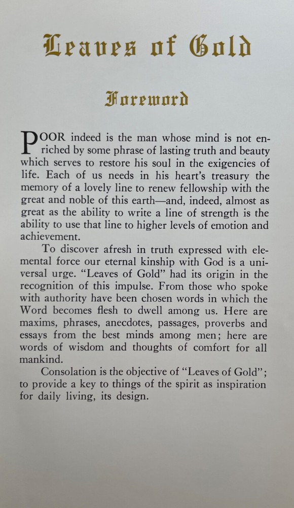 This exquisite hardcover book, written in 1938 by Clyde Francis Lytle, is a true gem for collectors and book enthusiasts alike. The book is in good vintage condition with a stunning cover and intricate details, and minimal wear consistent with age. It is beautifully textured with faux leather dark brown boards with gold front cover lettering, front cover embossed decoration and front cover satin lace tie binding. The front and rear endpapers are gold. Includes Foreword and General Index. "Poor indeed is the man whose mind is not enriched by some phrase of lasting truth and beauty which serves to restore his soul in the exigencies of life." This lovely book is a perfect addition to any collection. It would also be beautiful on the coffee table! This book was a gift from Mrs. Ethel to Mrs. Marie Niles in 1948 in Lancaster, California formerly from Rochester, New York. It has two handwritten notes on the inside cover. The first note reads; "To My Dearest Marie, from Ethel." The second note reads; "Marie J. Niles, 44227 N. Elm Ave., Lancaster." FREE SHIPPING!