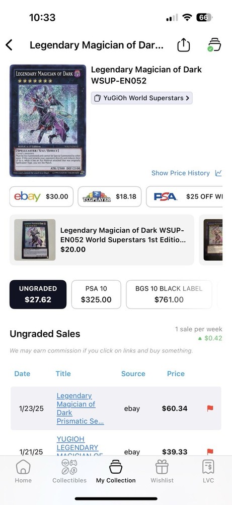 Legendary Magician of Dark WSUP-EN052- Prismatic Secret Rare - 1st Edition VLP