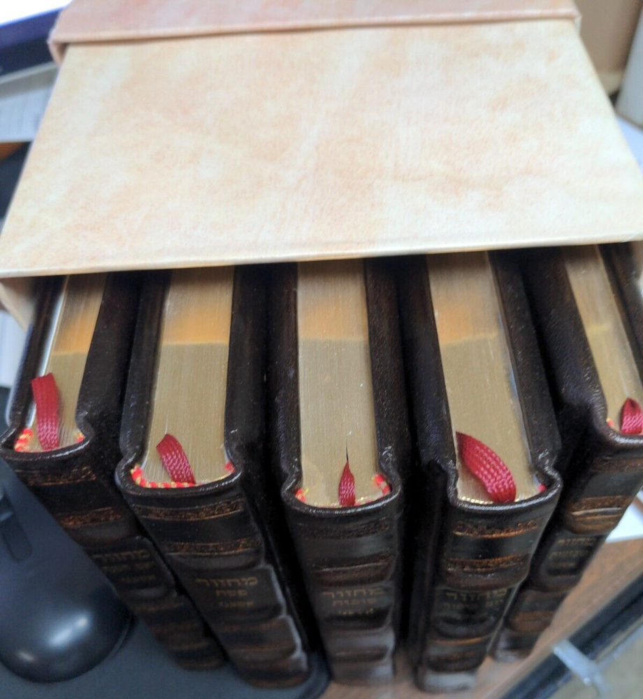 This is a set of light brown leather-bound Machzorim with the title Kol Tefilah, following the Ashkenaz tradition of Judaism. It is a collectible item and falls under the category of books and religion & spirituality. Fancy Gold Pages As seen in the picture above!