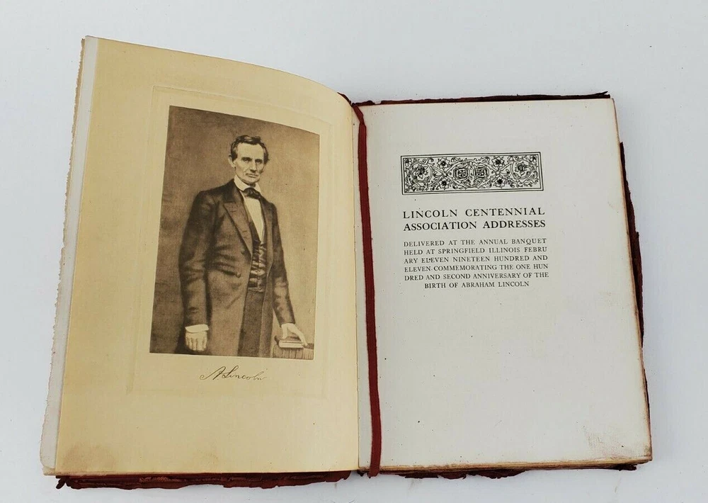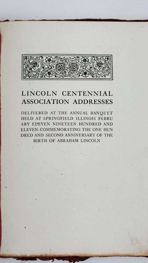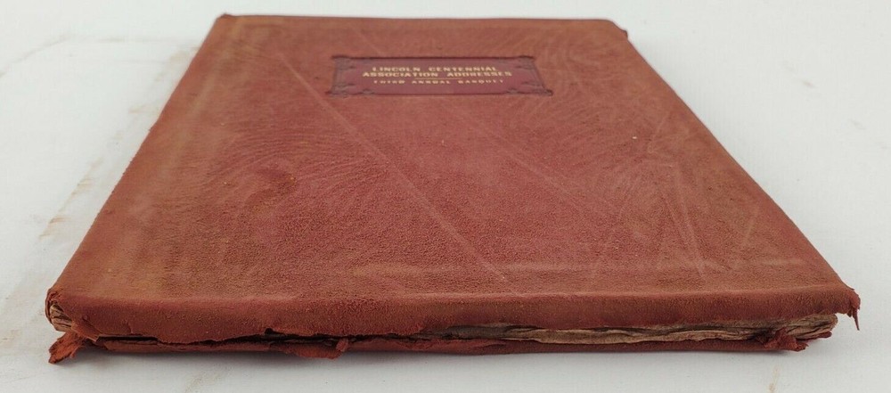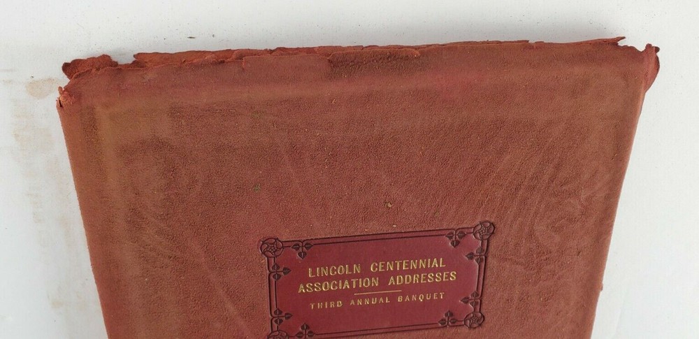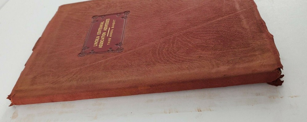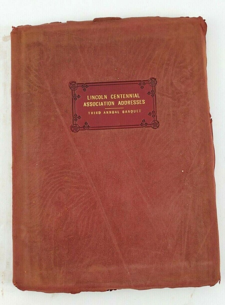 Lincoln Centennial Association Addresses Third Annual Banquet Leather Bound RARE. All Items Come From a Smoke Free Home and Climate Controlled area. Please see item condition for details. Please bid with confidence per my seller rating. Please make sure your PayPal and eBay shipping addresses match. We combine shipping on most items free of charge! If you have a problem with an item or have any questions please message me. Listing and template services provided by inkFrog