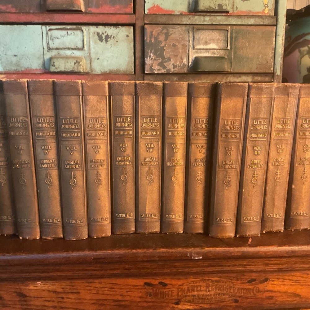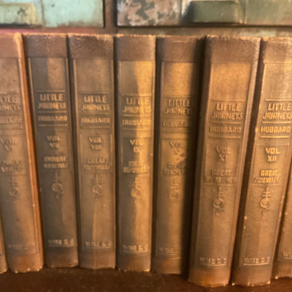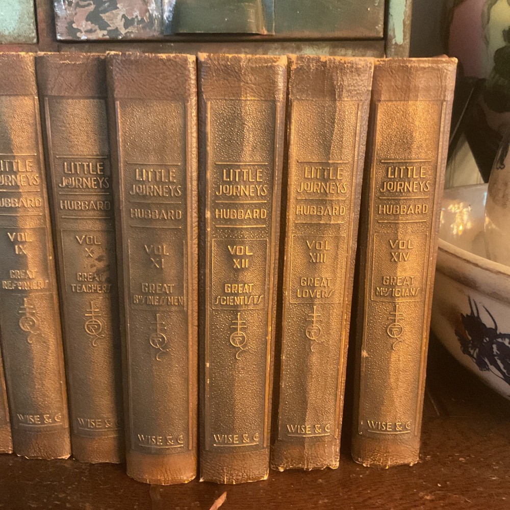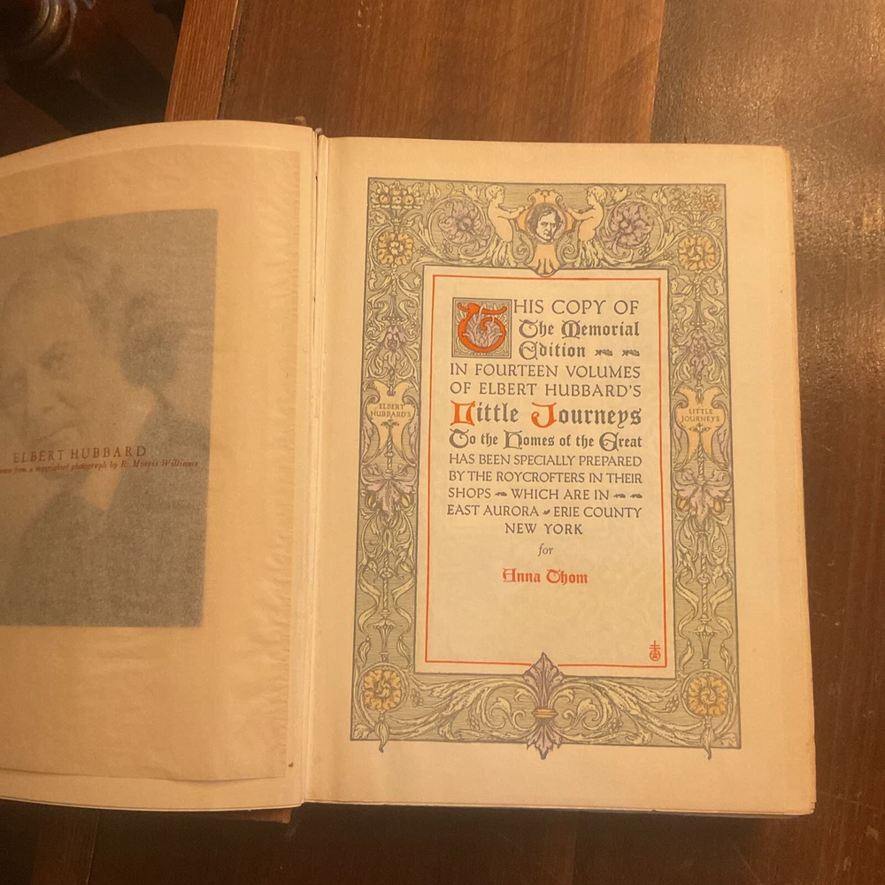 Little Journeys To The Homes Of The Great is a 14-volume set of books written by Elbert Hubbard in 1928. The books are bound in leather and written in English. They come with a dust jacket and are published by The Roycrofters. The set is categorized under Antiquarian & Collectible books and is focused on the topic of history. The set also includes a guide. Just a little edge wear