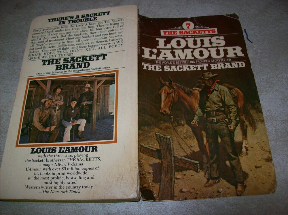 This offer is for 12 books. The photos show the condition. I will list other facts about them. The Brown Hardcover are: The Daybreakers March 1981 (excellent) Sackett April 1981 (like new) and another with writing inside Silver Canyon January 1981 (a bit of wet wrinkling on top) Flint February 1981 (brown staining on bottom probably got wet) Hardcover (Book club edition) The Haunted Mesa May 1987 (Jacket cover) Paperbacks Taggart - 15th printing May 1981 The Sackett Brand #7 16th printing 1979 Comstock Lode March 1982 The Man from Skibbereen October 1981 (stained pages) Conagher September 1969 former library The Broken Gun 8th printing former library This group is a good starter set for readers that haven't enjoyed these Westerns before. Enjoy all for a cheap price.