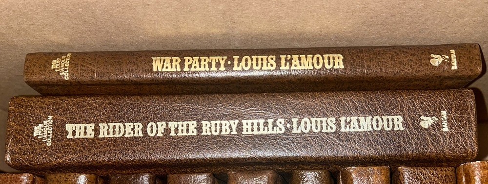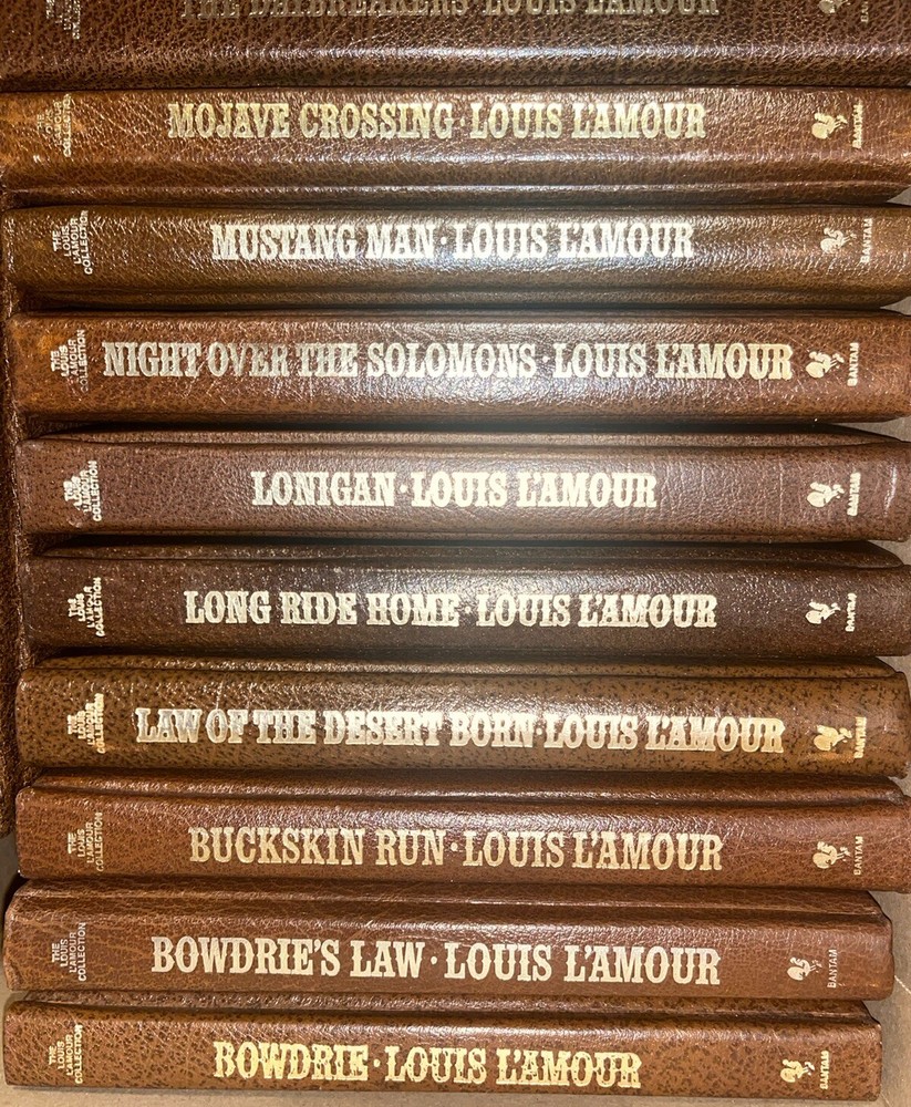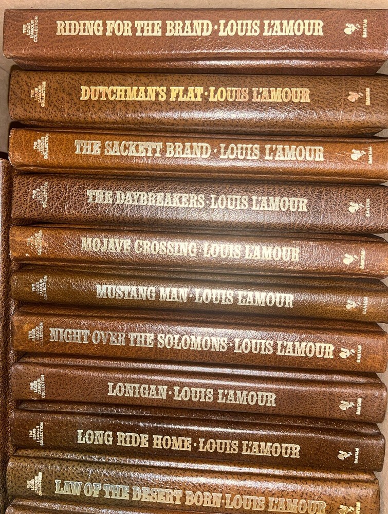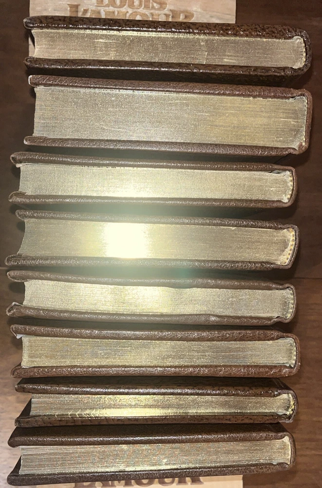 Lot of 15 SHORT STORIES and SACKETT novels Louis L'Amour Collection DELUXE GENUINE LEATHER Gold Gilt Page See photos for exact titles. Good condition high quality heirloom type binding. I usually sell these novels for $19.99 each. Professionally shipped with Media Mail price.