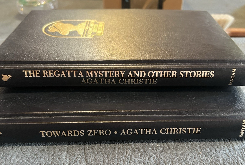 The product is a special edition lot of 2 Agatha Christie Mystery Collection leatherette hardcover books published by Bantam Books. Featuring faux leather binding, the books offer a vintage feel and are part of a collector's edition. The novels are in English and are perfect for fans of mystery fiction. The Agatha Christie Mystery Collection includes works by the renowned author, making it a sought-after addition to any bookshelf. INCLUDES 2 BOOKS - THE REGATTA MYSTERY AND OTHER STORIES and TOWARD ZERO.