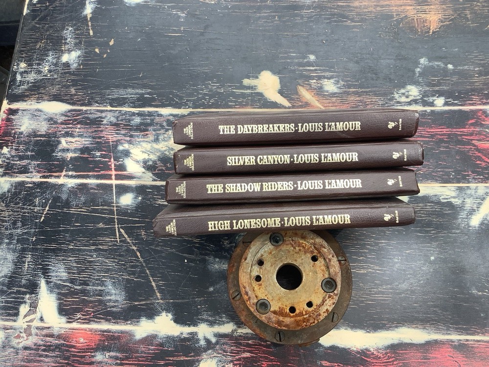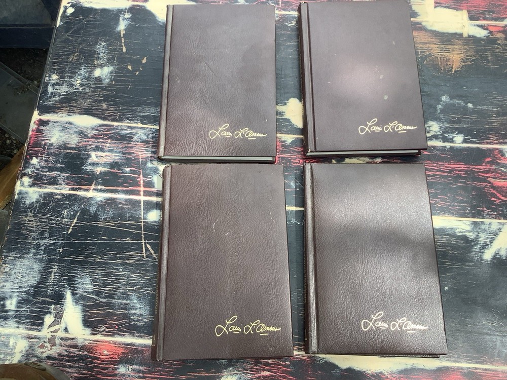 Dive into the rugged landscapes and captivating tales of the Old West with this lot of 4 Louis L'Amour leatherette collector novels. Each hardcover book is a treasure for fans and collectors alike, featuring classic stories that bring the Western genre to life. Published by Bantam Books, these editions are bound in faux leather, giving them a distinguished and timeless look. The collection spans various narratives that appeal to both young adults and adults, all presented in the original English language. Whether you're a long-time admirer of L'Amour's work or just discovering his captivating storytelling, these books are sure to become a valued part of your library. Titles are, The Daybreakers, High Lonesome, Silver Canyon, The Shadow Riders Books only, the chuck is not in the sale.