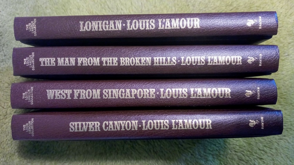 Perfect for gifts giving or for your own collection. Indulge in the world of cowboys and outlaws with this collector's edition of Louis L'Amour's Western novels. This lot includes four books bound in faux leather, perfect for any vintage book collector. The narratives are filled with action-packed adventures and are sure to captivate adult readers. The author's style of writing is unique and the stories are well-crafted, making these short story collections a must-have for any Western genre lover. The books are published by Bantam and are in excellent vintage condition. Add this to your collection of historical and Western books today!
