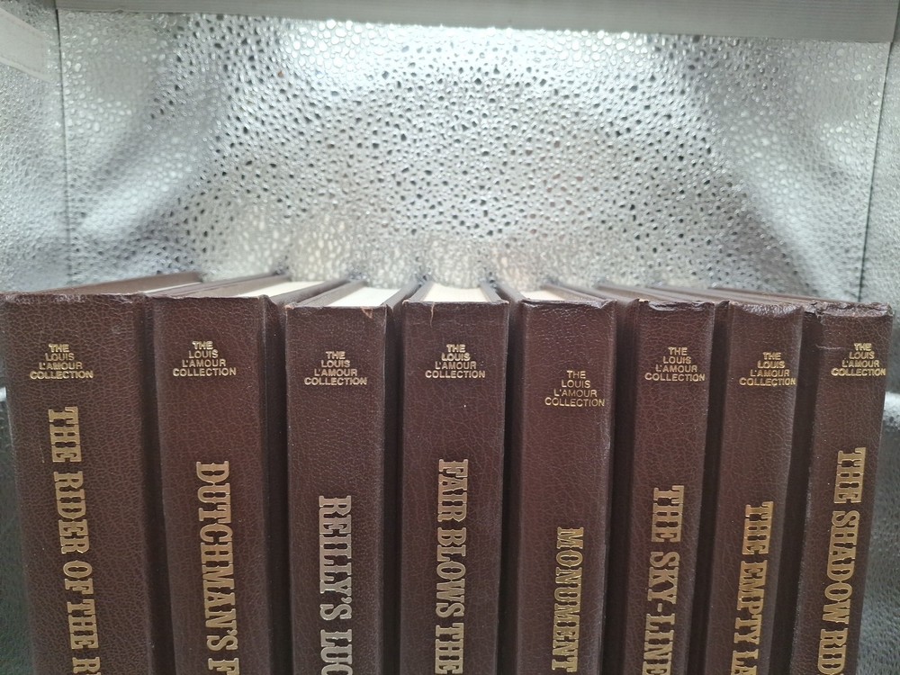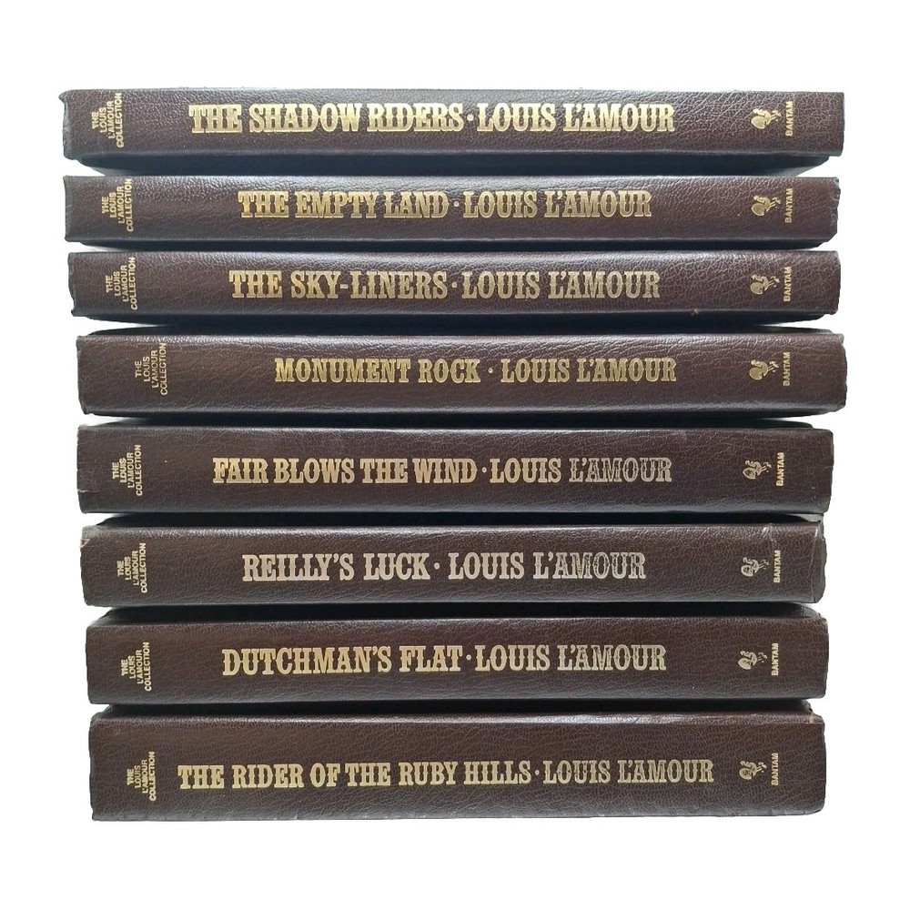 The Louis L’Amour Collection Leatherette Lot includes 8 books of short stories by the renowned author Louis L’Amour. This Collector's Edition published by Bantam Books features faux leather bound hardcover books in English, focusing on the Western genre. The set is perfect for fans of Western literature looking to enjoy a collection of L’Amour's classic stories in a special edition format. These come from my personal collection. Some were read once, others not at all.