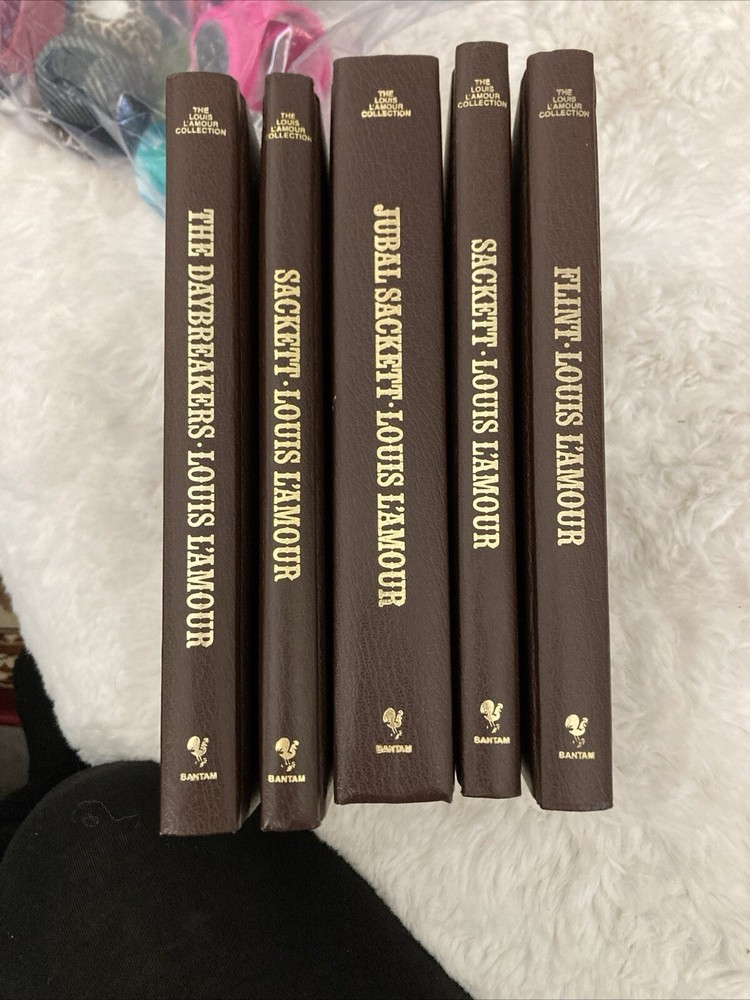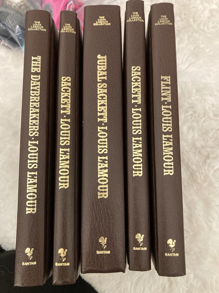 This Louis L'Amour Collection features a set of five books published by Bantam Books in the 1980s. The books are a collection of short stories in the Western genre, perfect for an adult audience. The vintage leatherette format adds a touch of elegance to the collector's edition. The books are in English and feature faux leather binding. The author, Louis L'Amour, is well-known for his Western-themed novels. This set is a perfect addition to any book collection and is sure to impress fans of Westerns and historical literature.