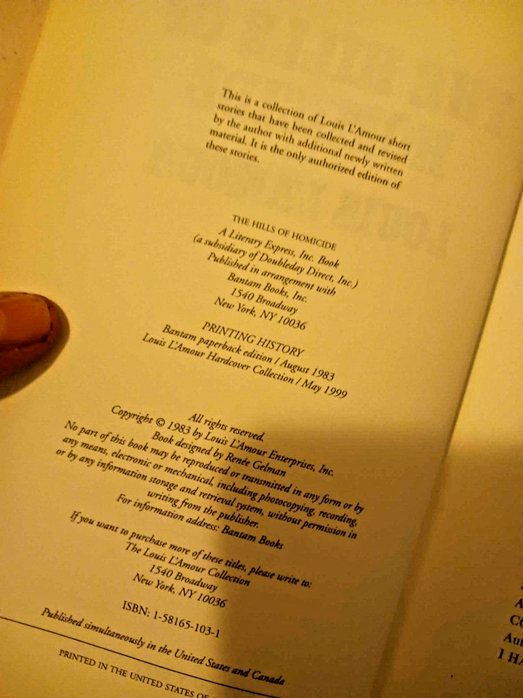 1. Borden Chantry 2. Bowdrie 3. Buckskin Run 4. Conagher 5. Down The Long Hills 6. Jubal Sackett 7. Lonigan 8. May There Be A Road 9. Mojave Crossing 10. Mustang Man 11. Ride The Dark Trail 12. Sackett 13. Smoke From This Alter 14. The Haunted Mesa 15. The Hills Of Homicide 16. The Riders Of High Rock 17. The Sackett Brand 18. The Warriors Path 19. Treasure Mountain