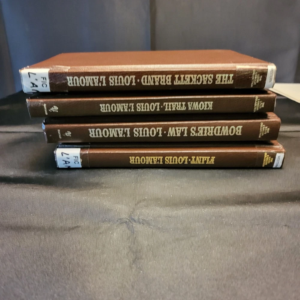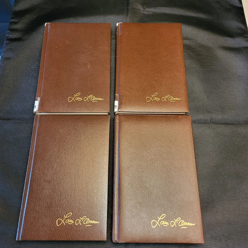 Journey into the heart of the Old West with this captivating collection of four leather-bound hardcovers by Louis L'Amour. Each story brings the rugged, adventurous spirit of frontier life to life, making it a treasured addition to any bookshelf. • Leather-bound hardcover editions • Titles: Bowdrie's Law, Kiowa Trail, The Sackett Brand, Flint • Collectible set • Classic Western literature • Gold embossed titles Condition: Pre-Owned Good a few stickers on binding, small library stamps and minor signs of use throughout