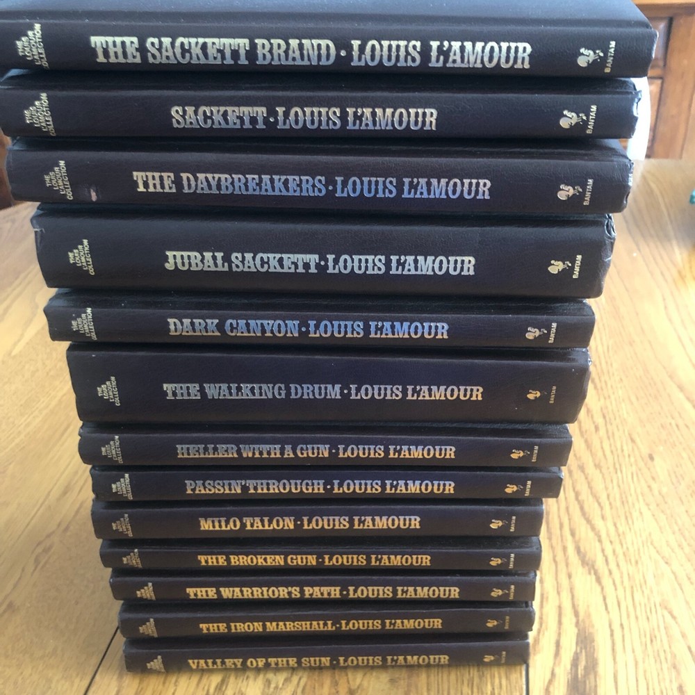 Louis L'Amour Leatherette Bantam Books Lot of 13. Books are in overall good condition. Books show minor wear.