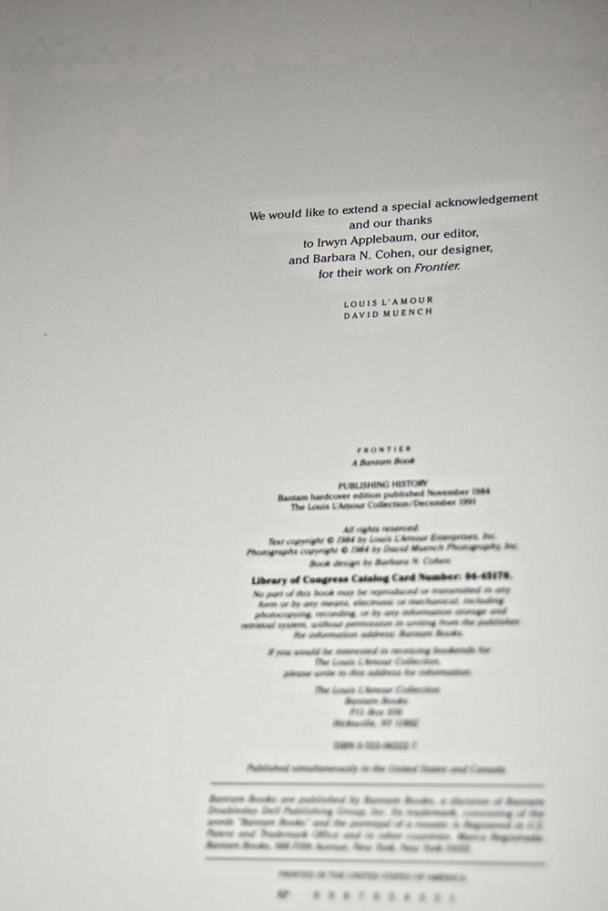 This Louis L'Amour leatherette coffee table photo book and 2007 appointment book set is a must-have for any Western genre book lover. The hardcover book titled "Frontier" is part of the Louis L'Amour Collection and published by Bantam Books. The book and appointment book are both in English and have a publication year of 2007. The set also includes a beautiful photo book featuring stunning images of the Western landscape. The author of the book is Louis L'Amour, making this set a true gem for fans of his work. The set falls under the category of "Books & Magazines" and "Books". Get your hands on this rare and valuable collection today! INCLUDING A NEW 2007 APPOINTMENT BOOK WHICH HAS WRITINGS AND ART THAT COULD BE ADMIRED. UNUSED. FRONTIER HAS A DING AND A SPOT ON THE COVER AND THE EDGES OF THE PAGES ARE YELLOWING AS SEEN IN PHOTOS.