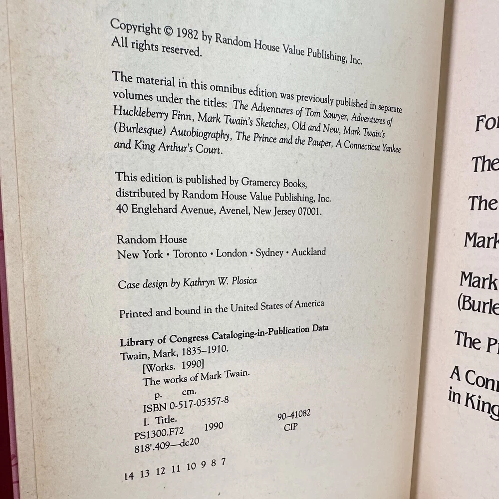 Title: MARK TWAIN Selected Works Red Leatherbound Book - Hardcover - 1982 Author: Mark Twain Publisher: Gramercy/Random House Condition: Item is in VERY GOOD, PRE-OWNED condition…Some minor blemishes can be found...NO rips or tears...Please see pictures for further details. Return Policy: Returns accepted within 30 days, In Like Condition. Please feel free to ask any questions prior to purchase. Thanks for looking. Have a Great Day!