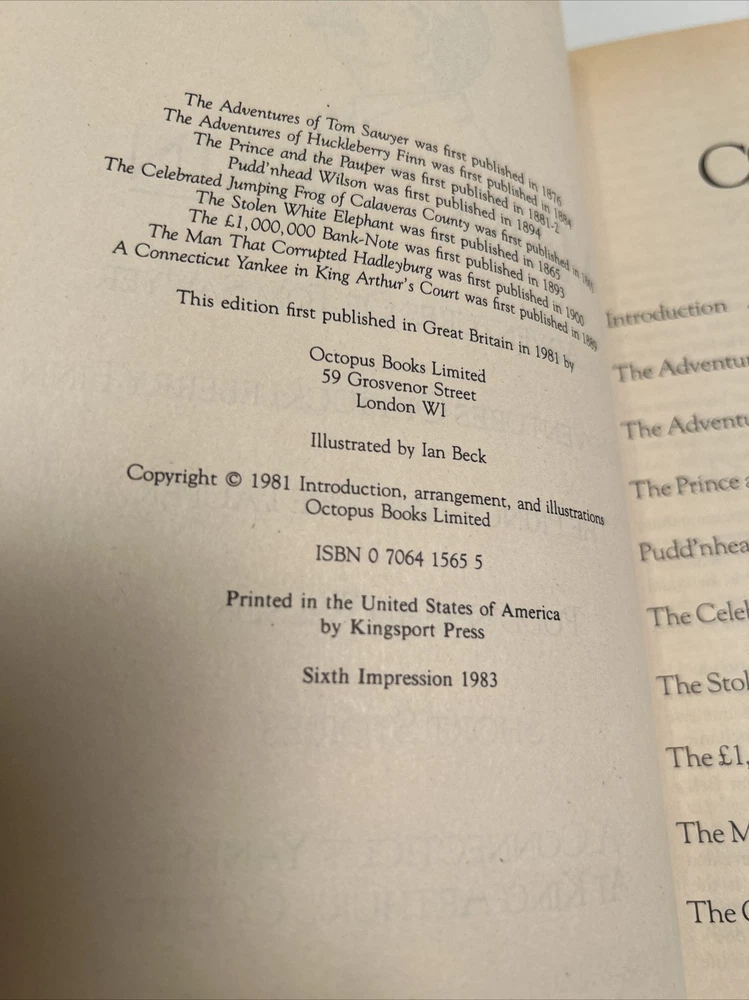 Treasury of World Masterpieces - Mark Twain - Complete & Unabridged 6th printing / 1983 Printed in 1983 but it is still new / never read. Excellent condition. Very tight binding, likely never opened. Free shipping