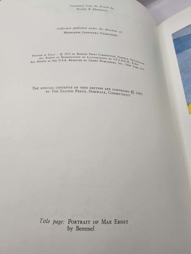 This exquisite collector's edition book showcases the stunning artwork of Max Ernst and other great artists. bound in hardcover format, this book is a must-have for any art and photography enthusiast. Published by Easton Press in 1985, the book features fine arts collections and is written in English. The book is adorned with beautiful cover art and includes special attributes that make it a unique addition to any collection. It is signed by the author, Diehl, Gaston, and is perfect for those interested in art and photography. This rare gem is a great find for collectors and fans of Max Ernst's work.