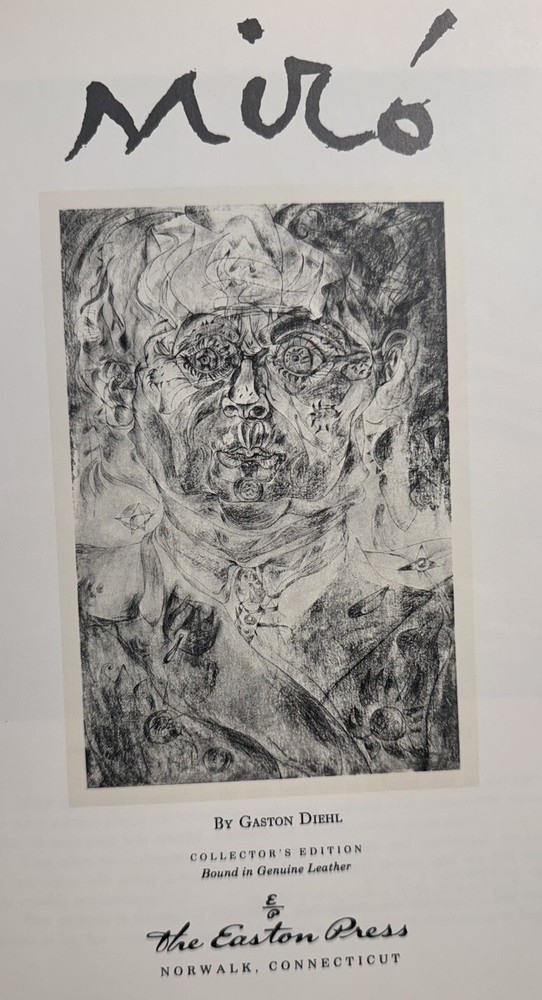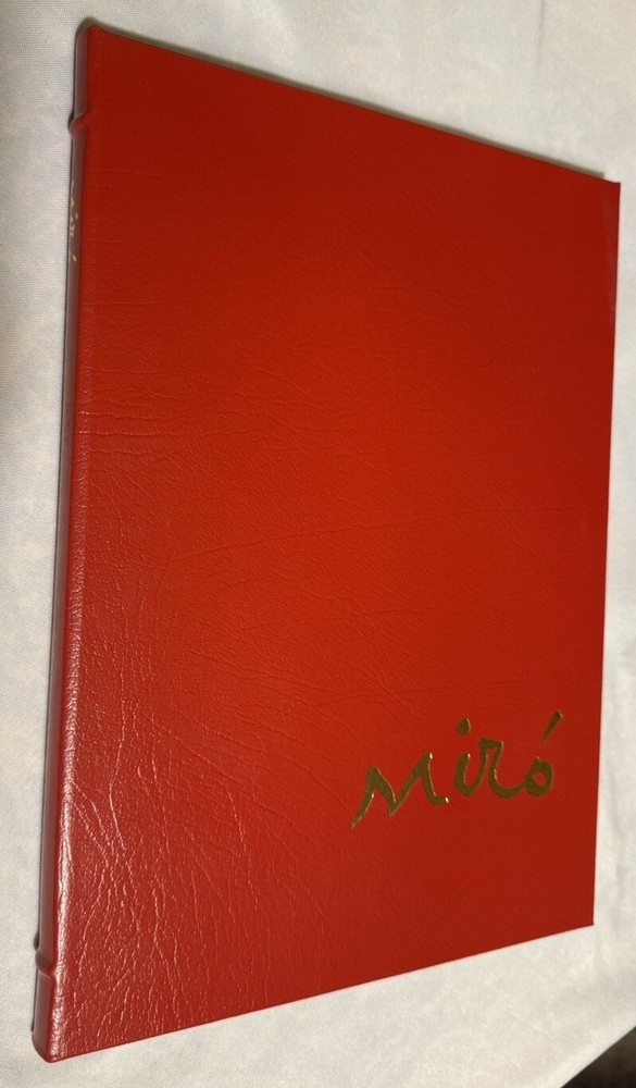 Miro by Gaston Diehl A glimpse into the famous Spanish painter’s life as a painter, ceramicist and sculptor. Full-color plates of the art. Published in a beautiful fine binding: Accented in 22kt gold, printed on archival acid-free paper with gilded edges, custom patterned endpapers, satin ribbon place holder, Smyth sewing & concealed muslin joints. Bound In full leather with hubbed spines. Oversized, quarto: 12.25” x 9”. Illustrated throughout. First edition thus. An Easton Press 1st edition/1st printing. Condition: NEAR MINT (FINE). Minimum shelf wear and rubbing. INTERIOR AS NEW. No former owner bookplates, no foxing, no writing. ***A spectacular copy of this special deluxe edition in FINE condition!*** Please view pictures to appreciate the craftsmanship and condition. Joan Miró i Ferrà was a Catalan Spanish painter, sculptor and ceramist. A museum dedicated to his work, the Fundació Joan Miró, was established in his native city of Barcelona in 1975, and another, the Fundació Pilar i Joan Miró, was established in his adoptive city of Palma in 1981. Earning international acclaim, his work has been interpreted as Surrealism but with a personal style, sometimes also veering into Fauvism and Expressionism. He was notable for his interest in the unconscious or the subconscious mind, reflected in his re-creation of the childlike. As a fellow book collector, I know how frustrating it can be when items aren’t accurately described or poorly packaged for shipping. That is why I (1) take a lot of pictures and try to describe condition issues as accurately as possible and (2) pack your book purchases with the utmost care before shipping. I have been selling and buying on eBay for over 10 years and have a 100% satisfaction rating, and offer a 100% satisfaction guarantee 30-day return policy. Happy to combine shipping on multiple orders to save you money. Please follow me as I have dozens of signed Easton Press books and thousands of other collectible books to list in the coming weeks and months!