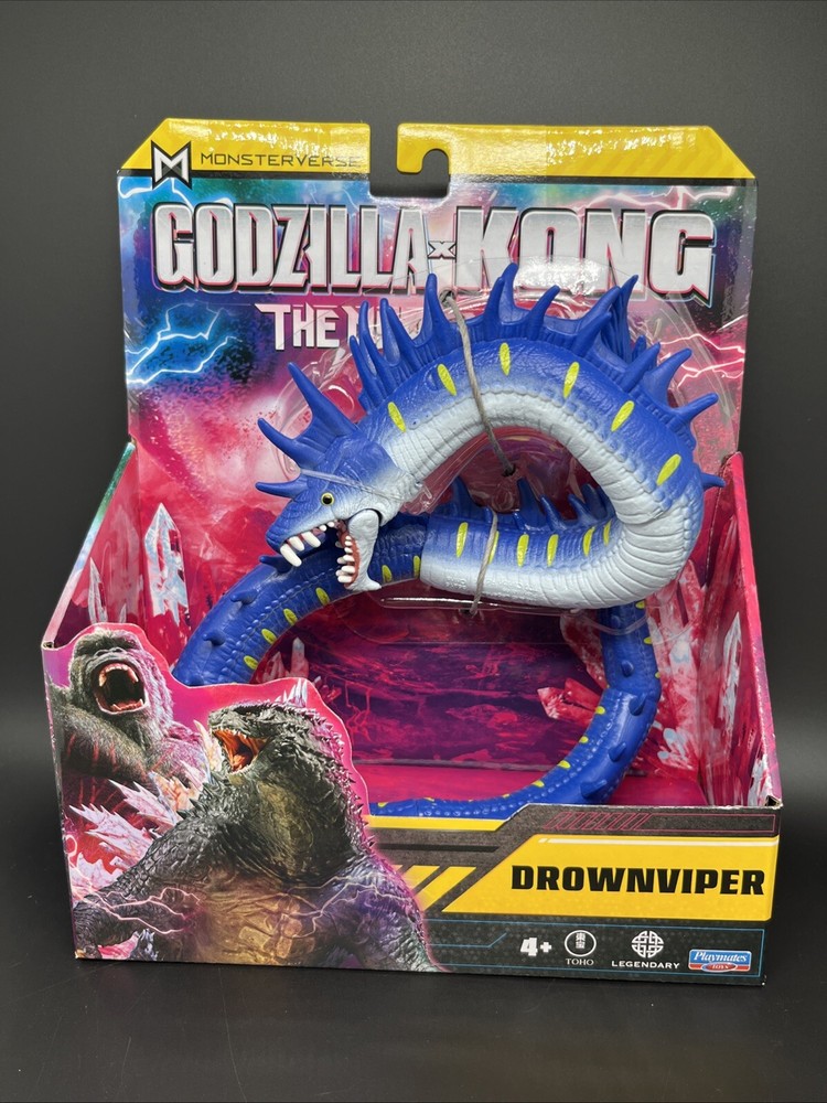 Unleash the excitement of the MONSTERVERSE with the Godzlla x Kong: The New Empire DROWNVIPER action figure. Meticulously crafted by Playmates Toys, this imposing figure stands at 6 inches tall and features intricate details true to the captivating TV show, Godzilla x Kong: The New Empire. The vivid blue color and sleek design embody the formidable character's essence, making it a standout addition to any collection. Designed for fans aged 4 and up, the DROWNVIPER figure is a testament to the enduring legacy of monster movies and the imaginative world of TV, Movie & Video Games themes. With its original, brand-new packaging commemorating the 2024 Godzilla x Kong movie, this collectible is not just an action figure but a slice of cinematic history, poised to deliver hours of creative play or to proudly display within your empire of collectibles.