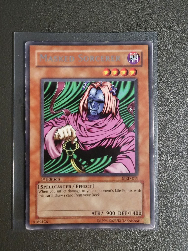 Absolutely love this card! The Masked Sorcerer is in perfect condition, just as described. Fast shipping and great packaging—top loader and penny sleeve kept it safe. Bonus free holo for buying multiple cards was a nice surprise. Seller is reliable and offers awesome deals. Highly recommend for any collector! Will definitely buy again.