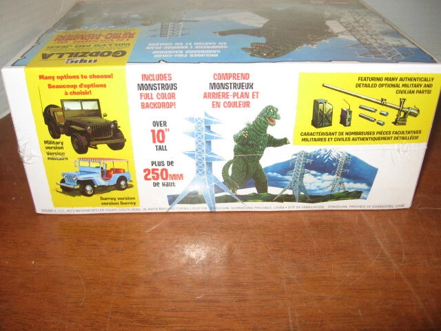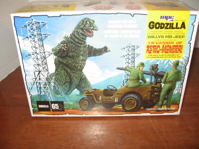 Up for sale one new in sealed box MPC 882 Godzilla Willys MB Jeep model kit. This kit requires full assembly with paint and glue NOT INCLUDED. I AM LISTING SEVERAL DIFFERENT MODELS. PayPal only. no international bids and, continental U.S. only. I try to maintain a 5 star rating on feedback so if you have a problem I would appreciate it if you would email me to give me a chance to fix the problem. To Combine Postage, use Add to cart, then Continue shopping for each of your items until you place the last item in your cart, then use Request total from seller & I will send you my invoice listing each of your purchases, the correct combined postage fee & Total Due. Finally, on my invoice, use Pay now for your payment.