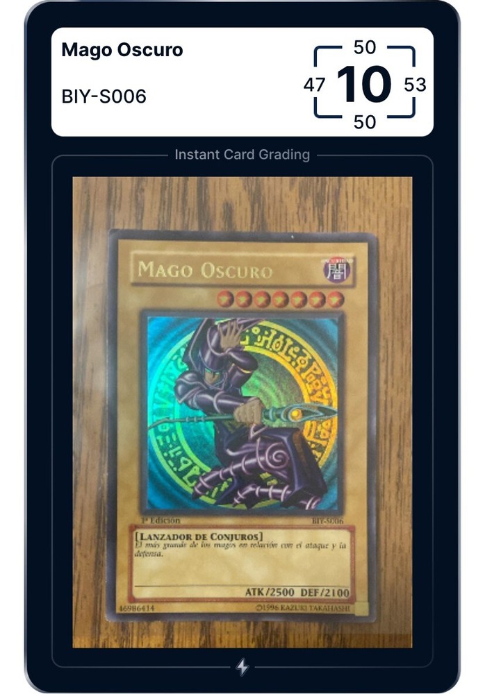 Very Rare Spanish Dark Magician Yu-Gi-Oh card, near mint condition. Pre-graded at 10...