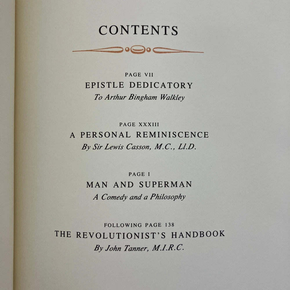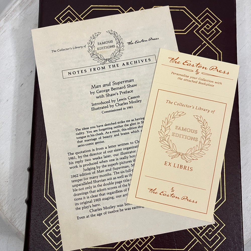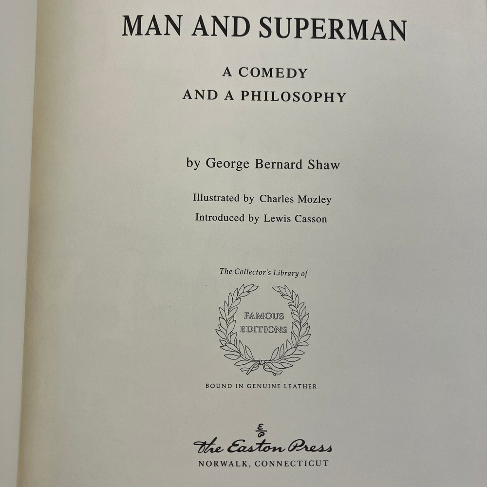 Man and Superman by George Shaw Easton Press Library of Famous Editions 1990 HC This is a used book with general edge and shelf wear, some fading to the covers and spotting on gilded page edges. Binding is intact, no writing, stains, or unusual smells. See pictures for overview of condition. We are BrightLight Books. We have sold tens of thousands of items online since 1998. Money Back Guaranteed! For Local Pickup in our Fern Park, FL store, please message us! 10-45 (6051505) 11/11/2024 AH