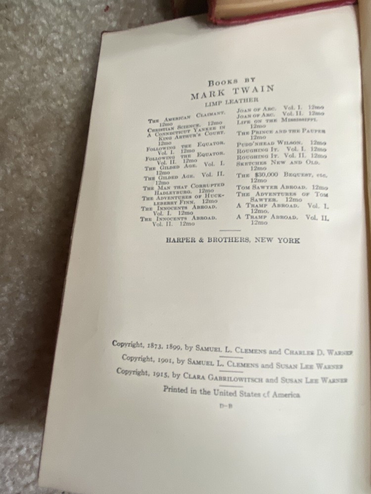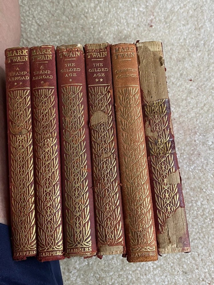 Mark Twain Book Set-A Tramp Abroad Huckleberry Finn, The Gilded Age, 1 More.