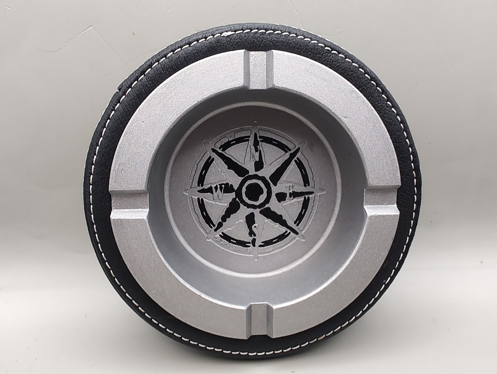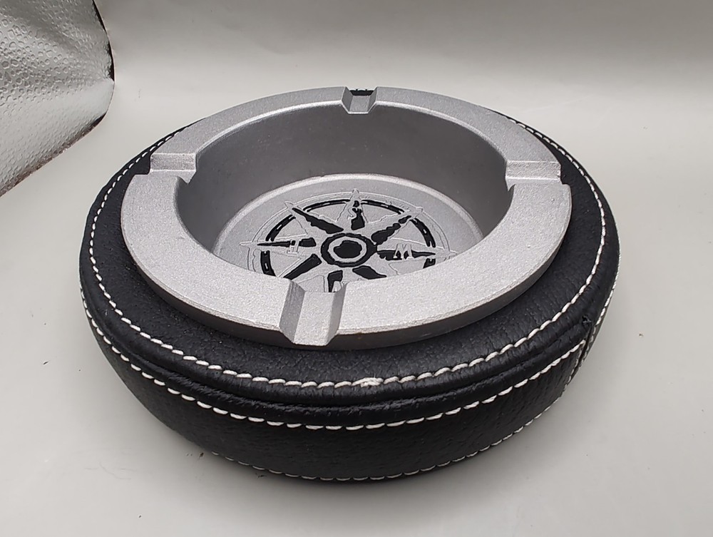 This Marlboro leather-bound pewter compass ashtray is a must-have for collectors of tobacciana. The ashtray is in the shape of a compass and is made of high-quality pewter. It is a perfect addition to any collection of ashtrays or compasses. The ashtray is not handmade and is in excellent condition.