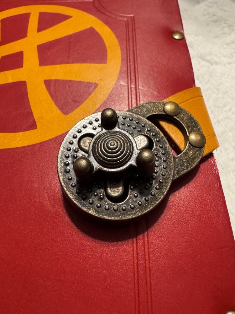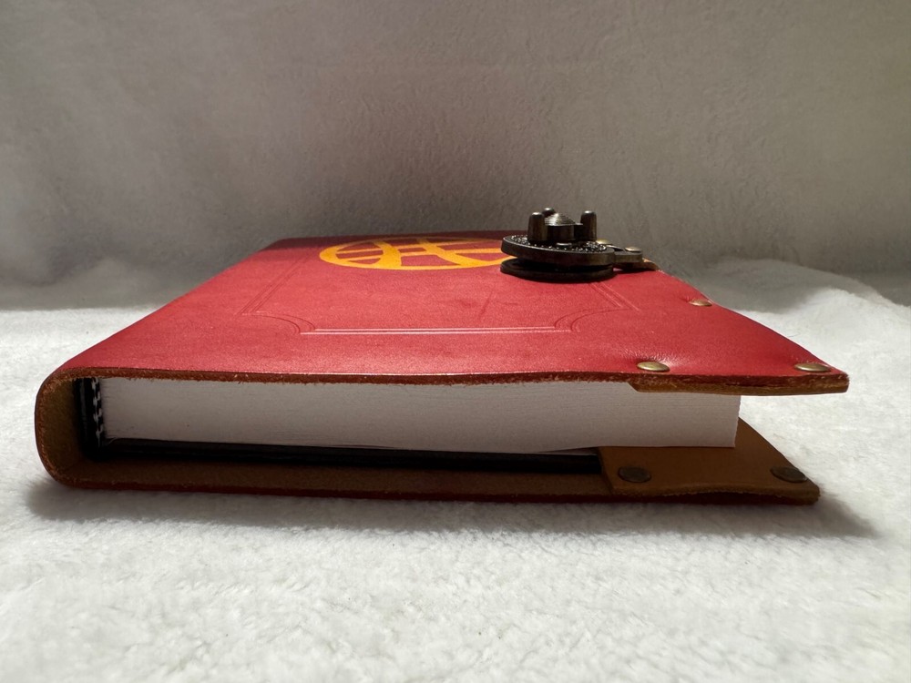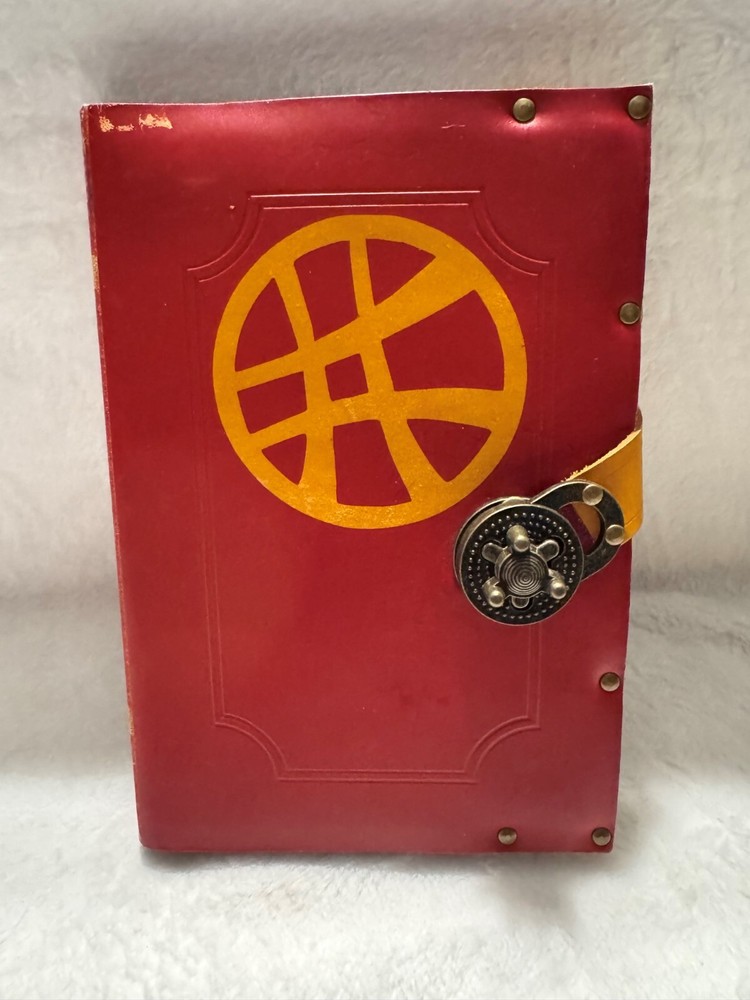 This leather-bound notebook features Marvel's Doctor Strange logo and lock. It is not sold commercially as it was purchased at Chicago's C2E2 from a vendor. The book is well made with stunning details, approximately 9 1/2 inches tall and 6 1/2 wide There is a small hole on the back and leather wear on the front from storage. This is a must have whether you want to display it or carrry it If you have any questions regarding this listing, please reach out and I will be happy to provide any additional information requested. I want you to be completely satisfied with your purchase