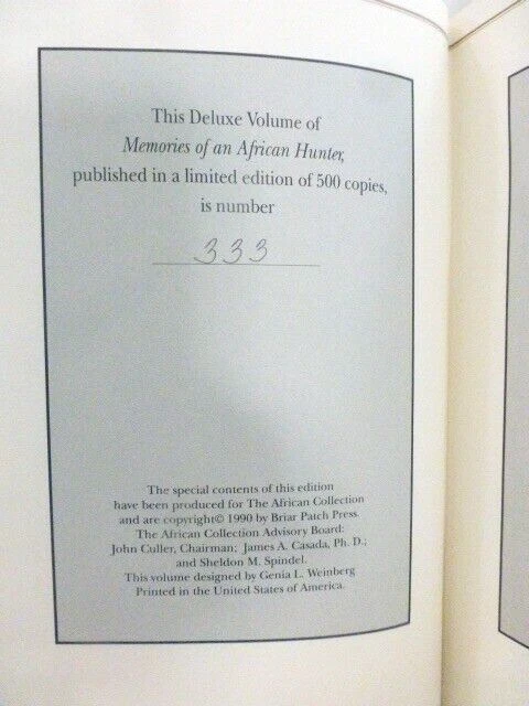 Limited edition of 500, this is book No.333 in the African Collection. The author shares his experiences hunting elephant, rhino, buffalo, hippo, lion, and antelope, discusses rifles and hunting techniques, and includes anecdotes about unusual individuals and events Photos are the actual book you will be getting. I also have several books listed in the African collection published by Briar Patch Press. Also have books in the Asian Series, and the Kenneth Anderson Series both published by John Culler & Sons. Most are As New condition, with many still wrapped in parchment paper. I carefully unwrap to take photos. Several books published by Amwell press in the same general topic of Africa and Safari. Most copies in the African Collection are No. 333 out of 500. Most books In the Asian Series are No. 110 out of 500 Most books in Kenneth Anderson Series are No.90 of 580 We are a retail used bookstore, all books are for sale in our store so we reserve the right to cancel listings at any time, items are not returnable so please ask any and all questions before purchase, we are happy to take additional photos or answer questions you may have. Also, if you are in Las Vegas/Henderson NV area books are available for in-person pick-up. I wrap carefully with bubble wrap and ship insured via USPS.