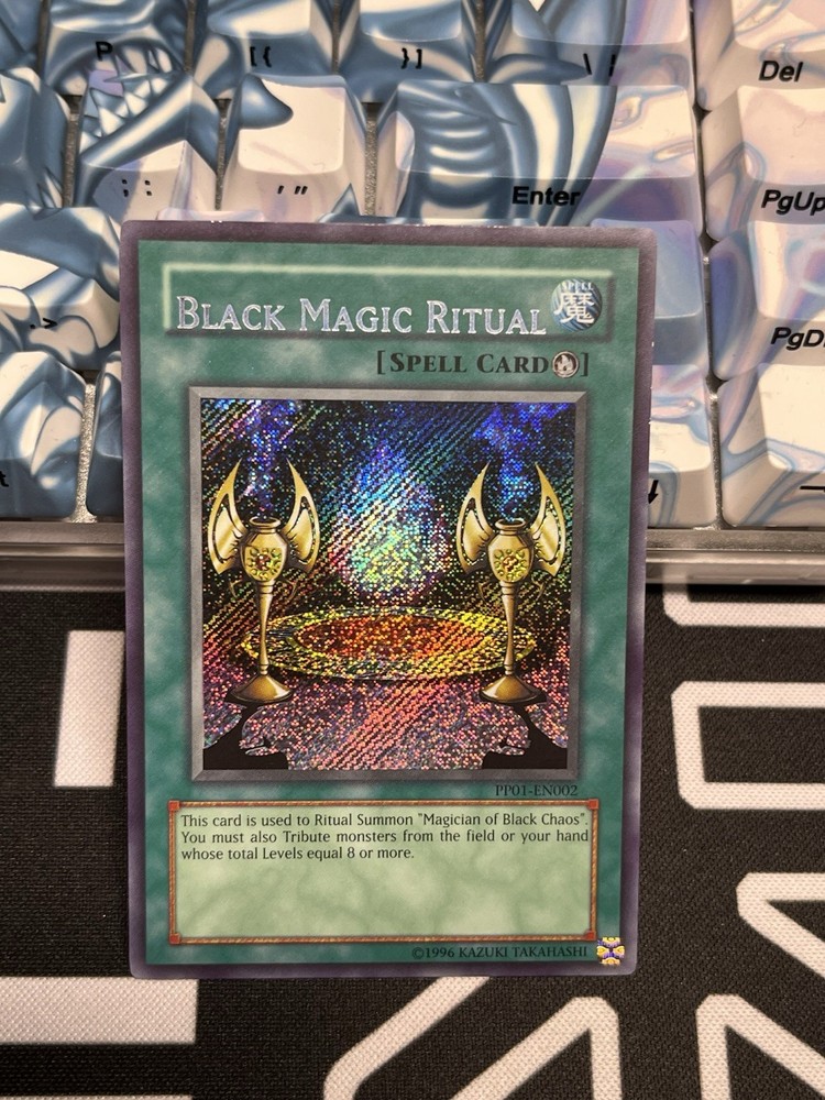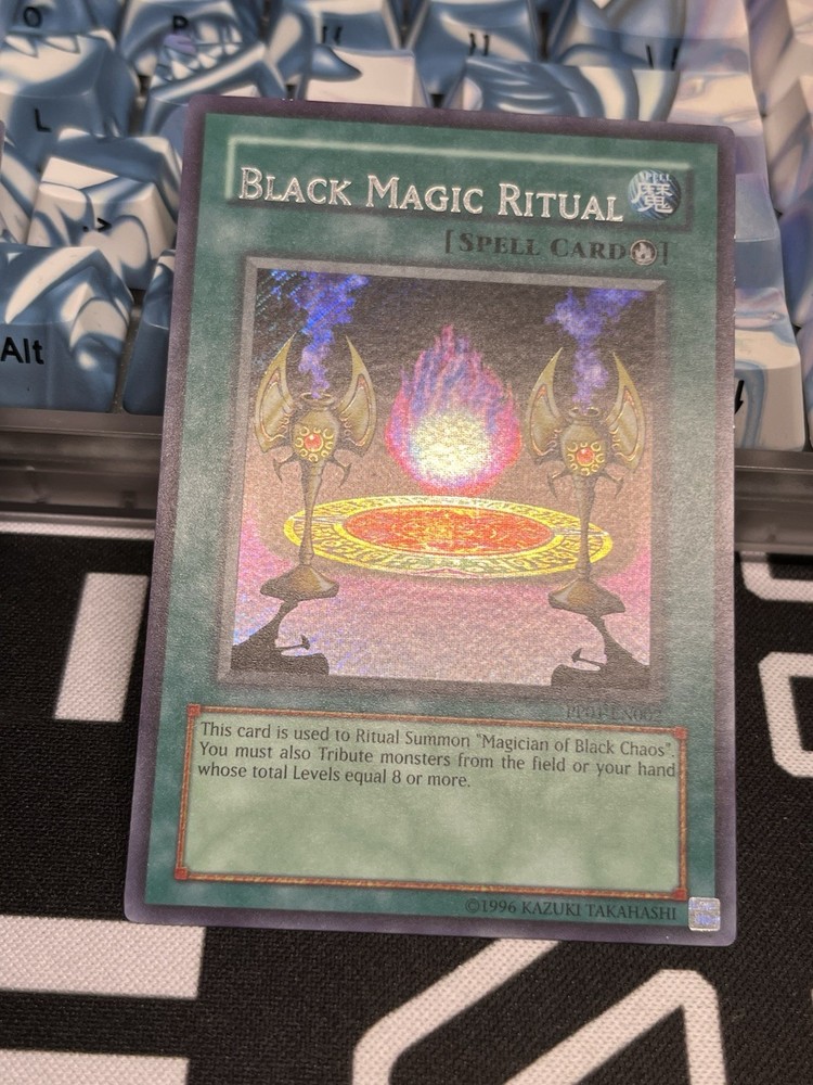 Magician of Black Chaos + Black Magic Ritual lowered name misprint pair. Both cards are in Near Mint Condition and ready for same day shipping....