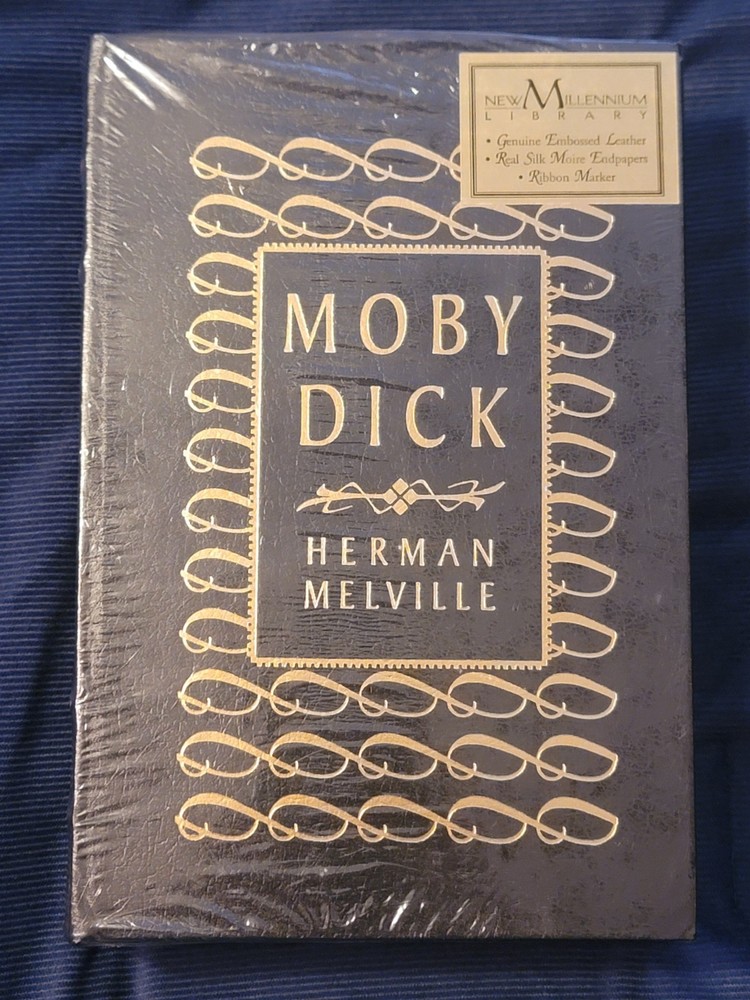 Delve into the epic adventure of "Moby Dick" by Herman Melville, presented in a timeless hardcover edition. This classic novel, revered for its profound storytelling and rich narrative, unfolds the dramatic quest of Captain Ahab and his crew aboard the whaler Pequod. The leather-bound volume exudes a sense of antiquity and collectible charm, making it a must-have for enthusiasts of literature and rare books. Originally purchased in the late 1990s, it was placed in storage and has never been opened. Crafted with attention to detail, this edition offers an unmarred reading experience of Melville's masterpiece. As a collectible, it embodies the spirit of adventure and the depth of human drama, standing as a testament to the genre of classic fiction. Whether for display or perusal, this book promises to be a distinguished addition to any library.