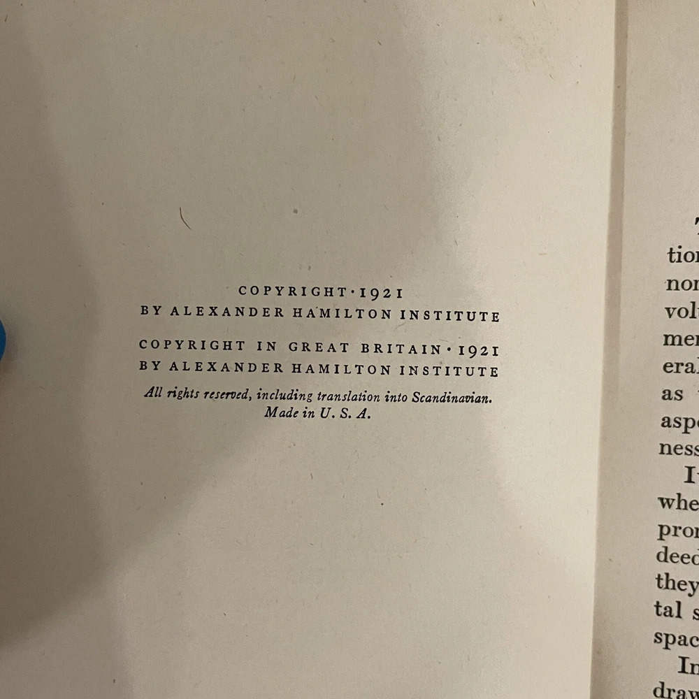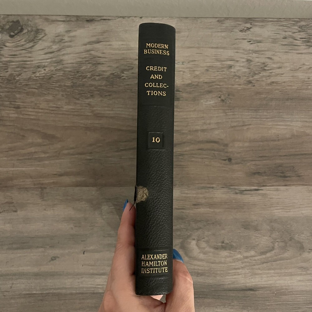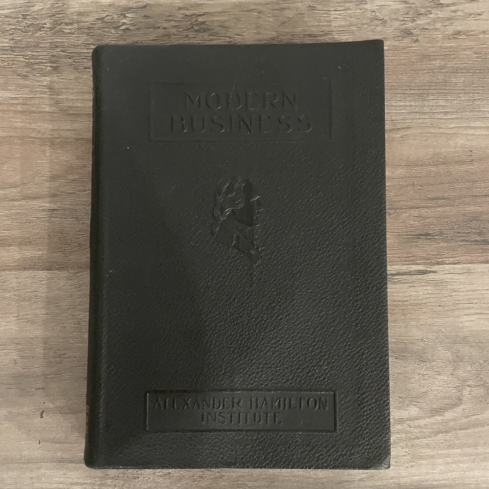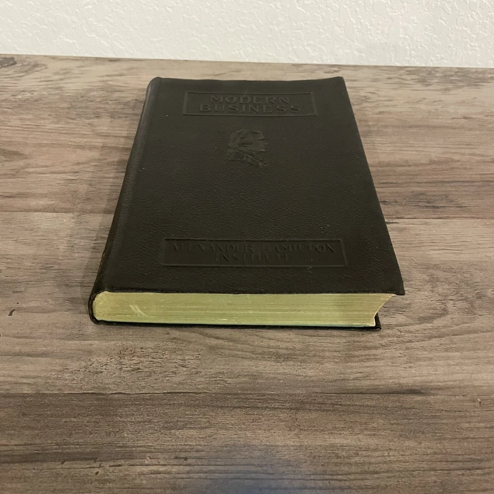 Very nice condition for a pre-owned vintage book from 1921, BUT this copy does have a tear/flaw in spine (see pics) that is reflected in the low price. See pics for full condition details. May have that “old book” smell. Questions, please ask before purchase. This vintage book from 1921 is a collector's edition of Modern Business by the Alexander Hamilton Institute. It covers the topic of credit and collections and is written in English. The book is bound in leather and was published in the United States. It is an original printing and is in great shape for its age. This book would be a wonderful addition to any business or antique book collection.