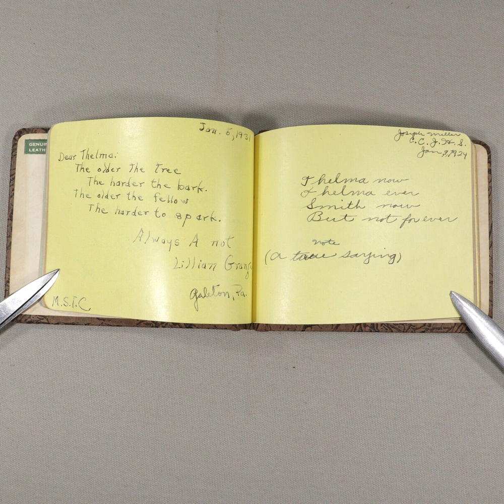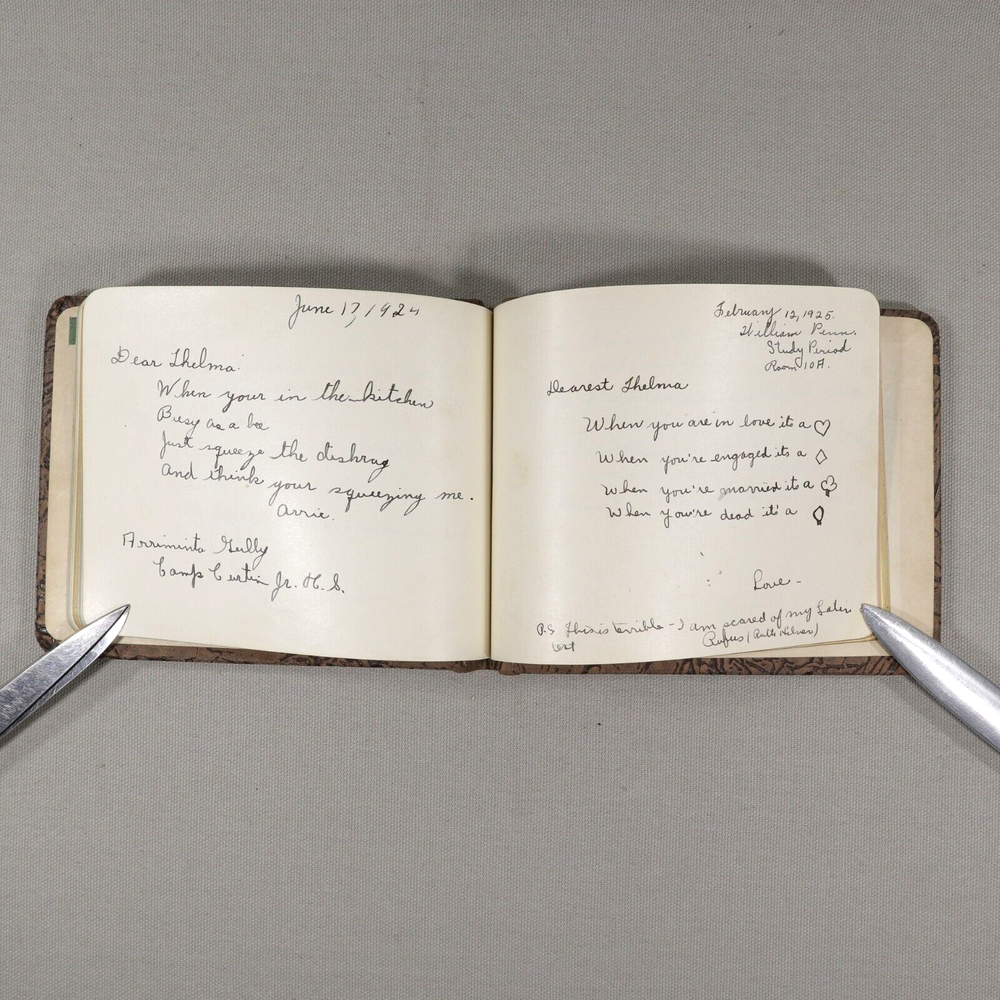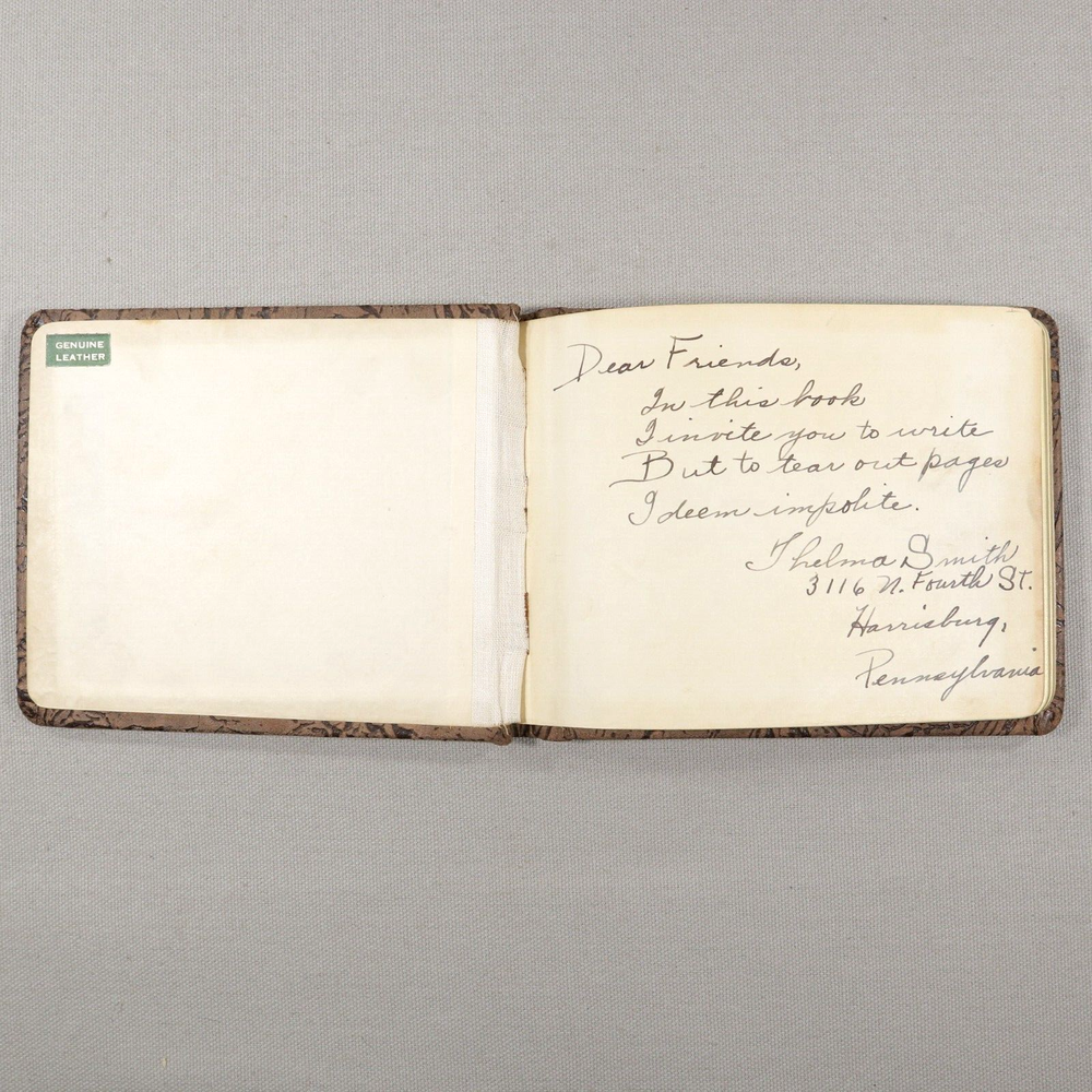 Filled with autographs. Most from early 20's. Some from the 30's. Leather bound multi color page book is in very good condition for its's age. Nice piece of history. I package all items very carefully. Please contact me with any concerns you have after receiving the item. I offer combined shipping on certain items and I am willing to offer alternate shipping upon request. Any weight or measurement in the listing are for reference purposes only. I do my best to represent each item accurately, but please do your own research before bidding or buying. Thank you for looking!