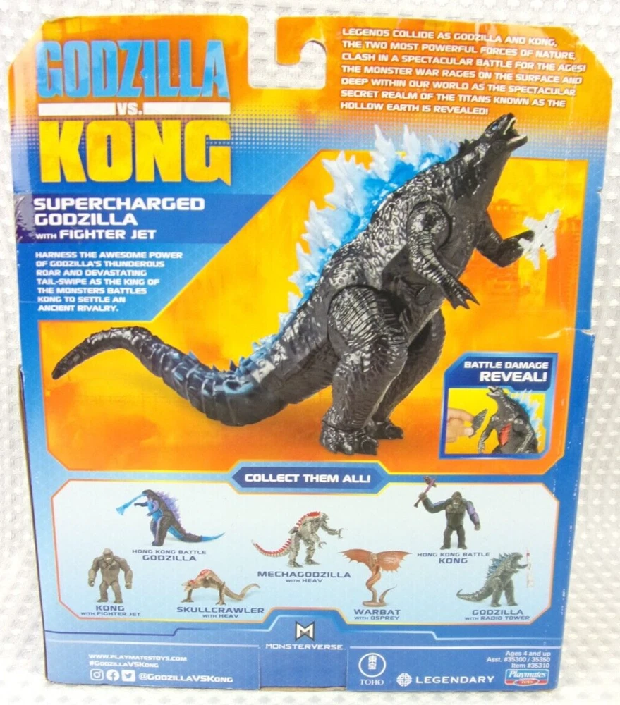 Monsterverse Supercharged Godzilla w/Fighter Jet & Battle Damage Reveal NEW Quoted from manufacturer's site: Legends collide as Godzilla and Kong, the two most powerful forces of nature, clash in a spectacular battle for the ages! The monster war rages on the surface and deep within our world as the spectacular secret realm of the titans known as the Hollow Earth is revealed! Harness the awesome power of Godzilla's thunderous roar and devastating tail-swipe as the king of the monsters battles Kong to settle an ancient rivalry! Comes with a "battle damage" feature! Remove to reveal the powerful impact of monster battles! Includes Radio Tower accessory! Designed and sculpted based on the 2021 blockbuster movie, Godzilla vs. Kong! Collect them all! Brand new in box. May show minor wear and tear from shelf storage. Will be carefully shipped in a box with padding. Shipping ** Shipping varies by location. Expedited shipping available. This covers shipping, tracking number, and packaging materials. Returns ** Returns only accepted on unopened items. There is a 20% restocking fee on all returns. Item must be returned in the same condition that it was shipped. Items will be compared for sellers marks before return is accepted. Buyer must pay the return shipping cost. Sales Tax ** Ebay will charge sales tax on items as required by the state you live in.
