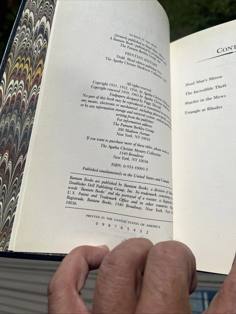 The product is a rare and valuable edition of "Murder in the Mews" from The Agatha Christie Mystery Collection, published by Bantam Books in 1997. This special edition features a leatherette binding and is part of The Agatha Christie Mystery Collection series. The novel is a classic crime and thriller piece written by Agatha Christie, making it an essential read for young adults and adults alike. With its intriguing narrative and English language, this edition is a collector's item for fans of mystery novels.