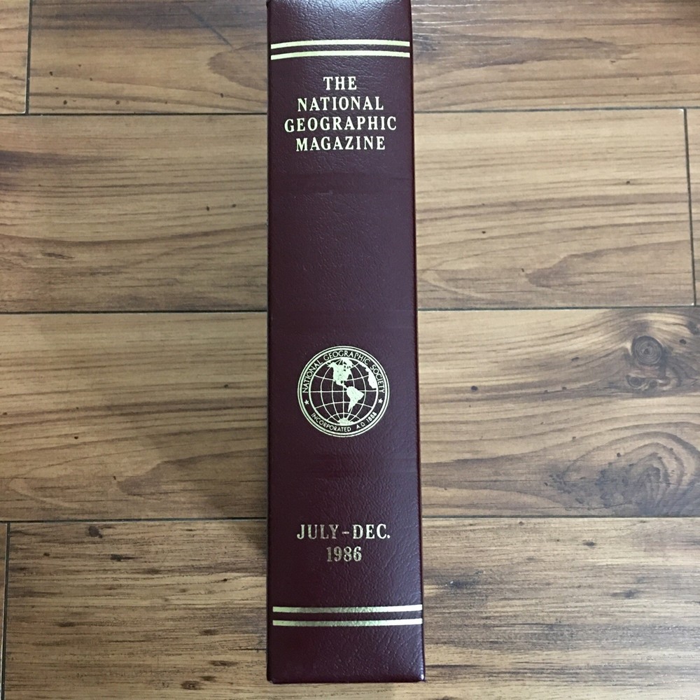 NATIONAL GEOGRAPHIC FAUX LEATHER BOUND SLIP CASE July-December 1986 Condition is "Very Good". Shipped with USPS Media Mail Garage