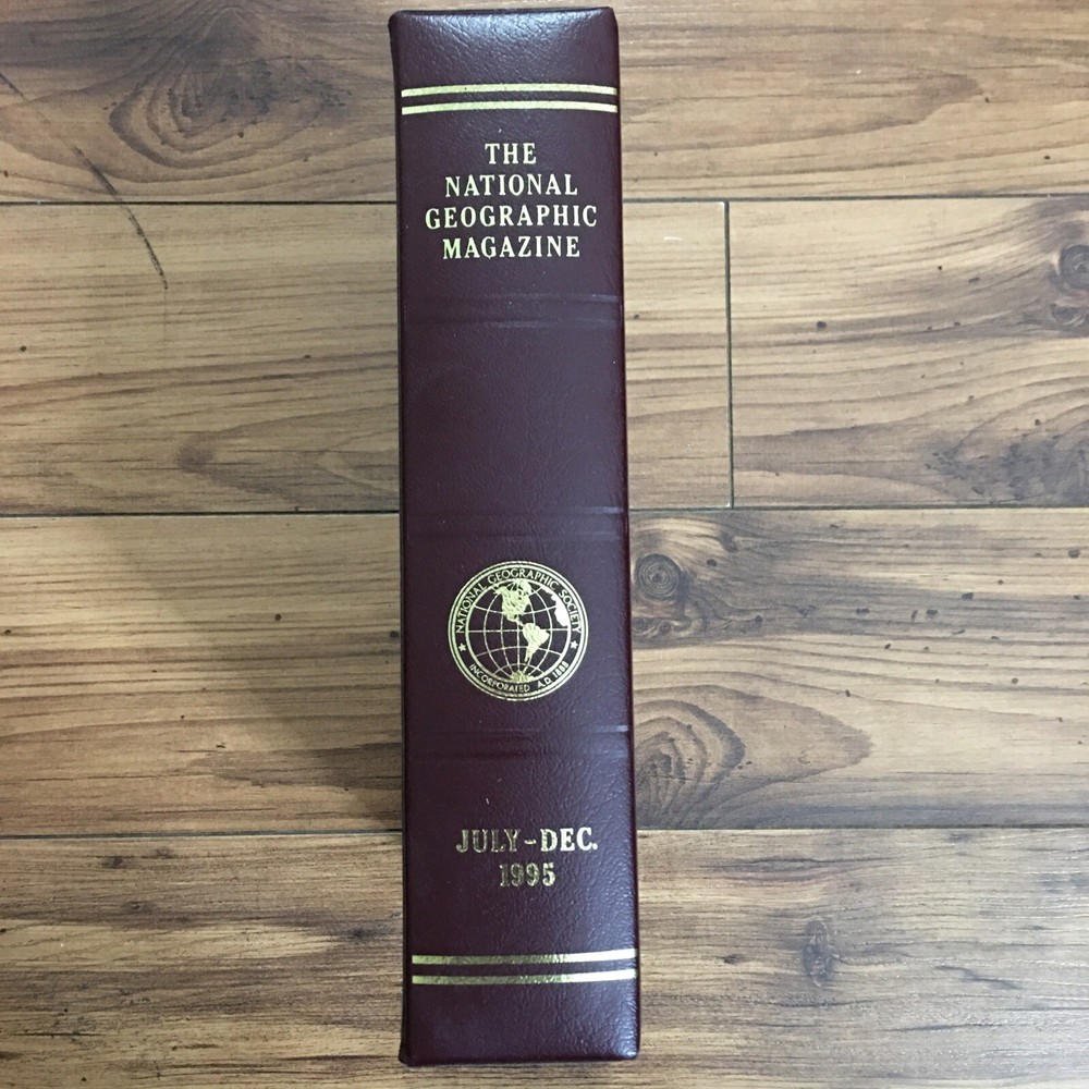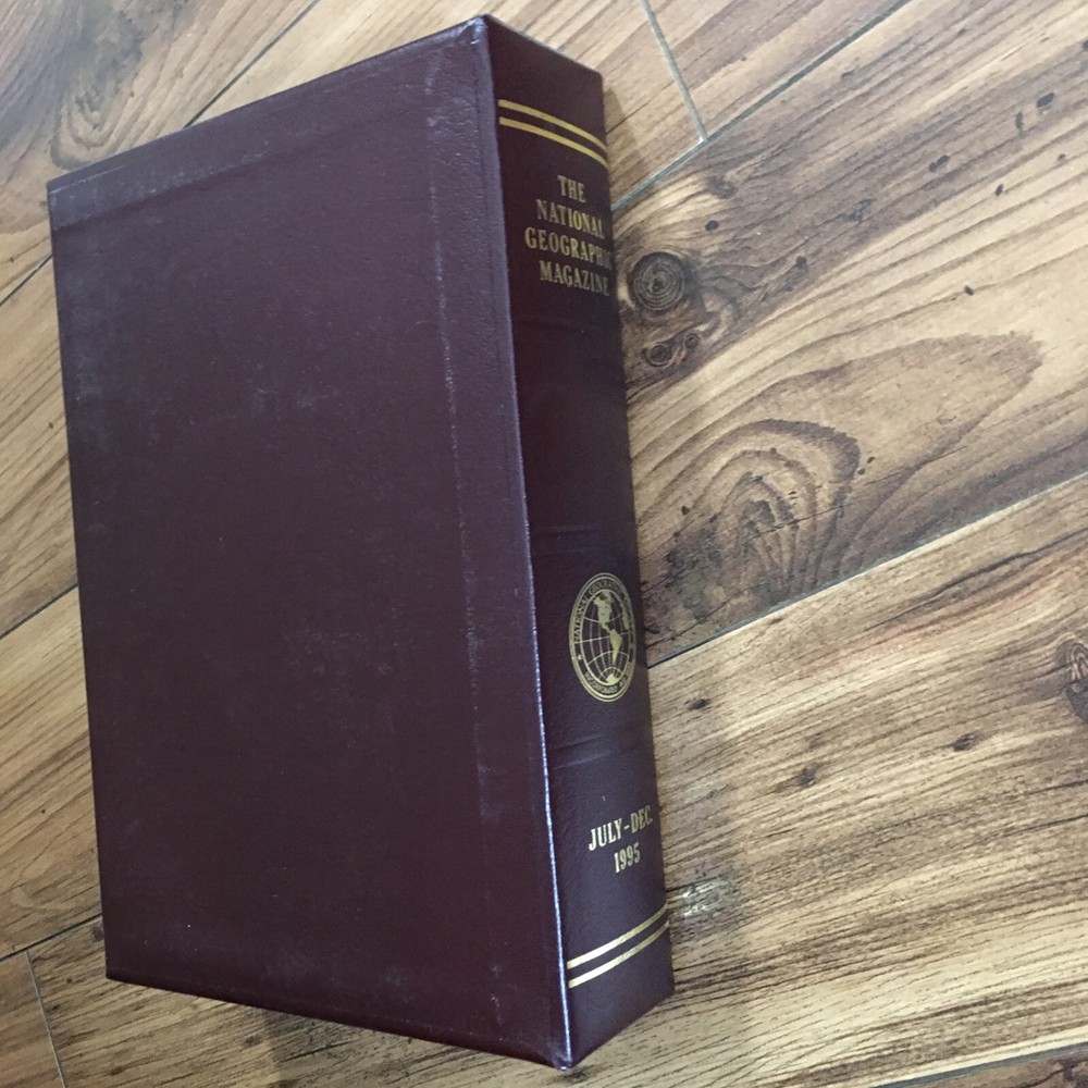 NATIONAL GEOGRAPHIC FAUX LEATHER BOUND SLIP CASE July-December 1995 Condition is "Very Good". Shipped with USPS Media Mail Garage
