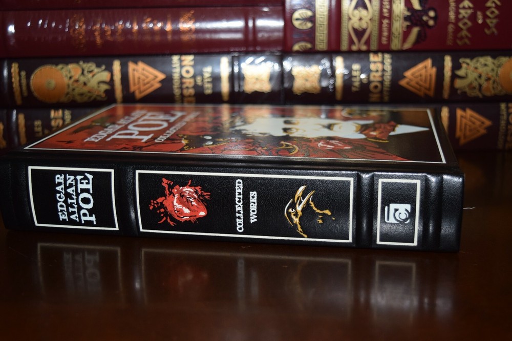 This stunning leather-bound edition of Poe's works is a must-have for any book lover! The gilt edges and ribbon marker add a luxurious touch, making it perfect for display. Poe's timeless tales of mystery and horror come alive in this beautifully crafted volume—a true collector's gem that feels as enchanting as the stories inside. Highly recommend for fans of classic literature!