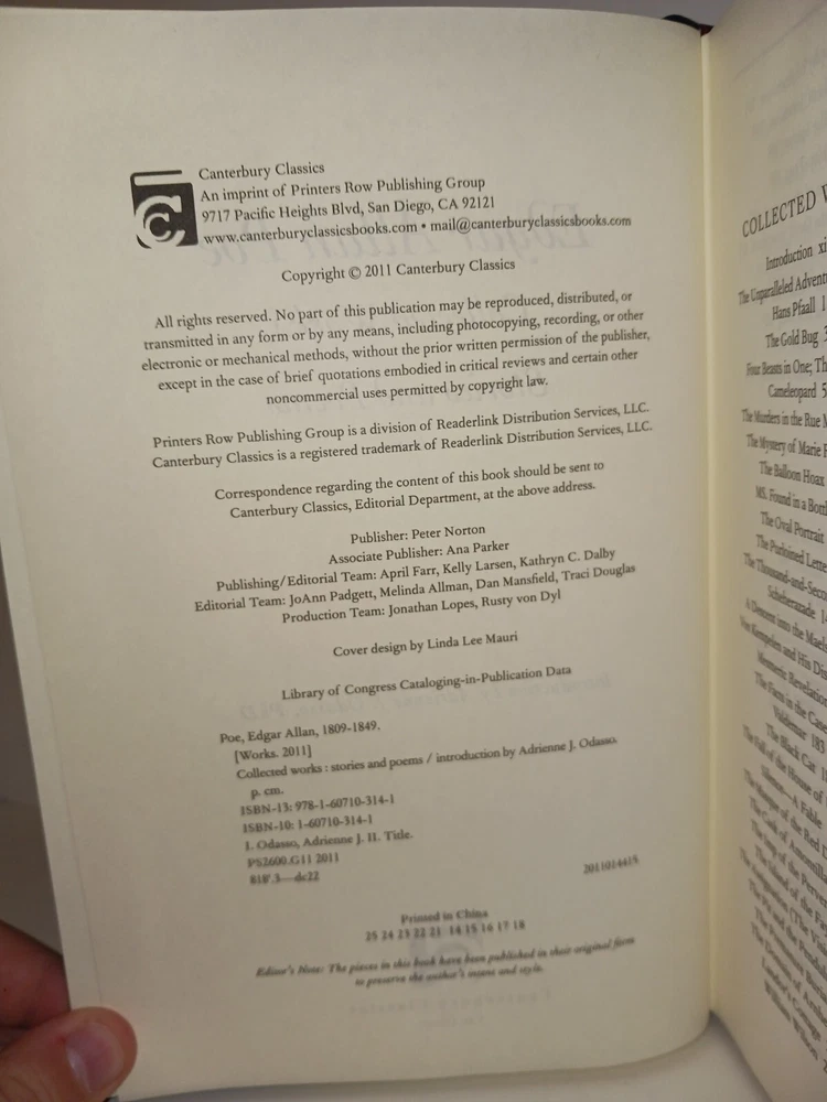 This is a brand new, limited/special edition collector's hardcover book titled "Edgar Allan Poe Collected Works". It features the complete works of the famous author, including his horror fiction such as "The Raven" and "The Murders in the Rue Morgue". The book is bound in bonded leather and is a must-have for any adult audience who are fans of Poe's narrative style. The book is written entirely in English and is categorized under "Books & Magazines" and "Books".