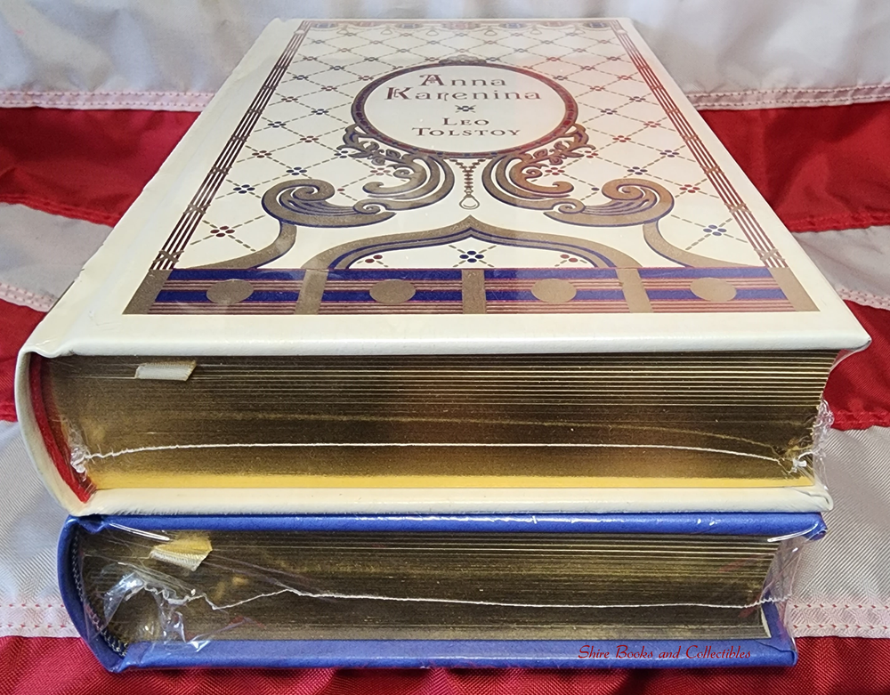 Leo Tolstoy Anna Karenina (Rare OOP) & War and Peace Special Bonded Leather Hardcover Collectible Edition BRAND NEW and SEALED!! Item Description These books are brand new and sealed , never read or used in any way Beautiful gilt lettering and art design on the cover and spine Gold gilt page edges Satin ribbon book marker attached Bonded Leather bound hardback boards Anna Karenina (Rare OOP) First published 1878, Leo Tolstoy's Anna Karenina is the tragic story of aristocrat Anna Karenina and her ill-fated affair with the cavalry officer Count Vronsky. Although passionately in love, the couple find their romance doomed by the sexual mores of their time and place, and the double standards that apply to men and women. The tale's panoramic sweep and Tolstoy's colorful description of Russia and the European continent are virtually unparalleled in world literature. This novel, in the estimation of William Faulkner, is "the best ever written". Dimensions: 9.4 x 6.5 x 1.7 inches War and Peace When Napoleon invades Russia in 1812 it forever changes those engulfed by the violence. Although told on a panoramic scale, War and Peace explores how the chaos of battle, the horror of death and bloodshed, and the expression of love and valor affect the personal lives of three principal characters: the courageous Prince Andrei Bolkonsky, the idealistic Pierre Bezukhov, and the nobly born beauty Natasha Rostov. Dimensions: 9.4 x 6.5 x 1.9 inches Shipping FREE Shipping within the continental USA will be via USPS Media Mail International Shipping will be via Ebay Global Shipping Program. My books are shipped in sturdy, safe and secure boxes. Return Policy: Returned or exchanged items must be in original condition to qualify for a refund, and must be returned within 30 days from the purchase date. Customers are responsible for all return or exchange shipping charges. Once the returned item is received back to me and I can verify condition, I will process the Refund. Track Page Views With Auctiva's FREE Counter