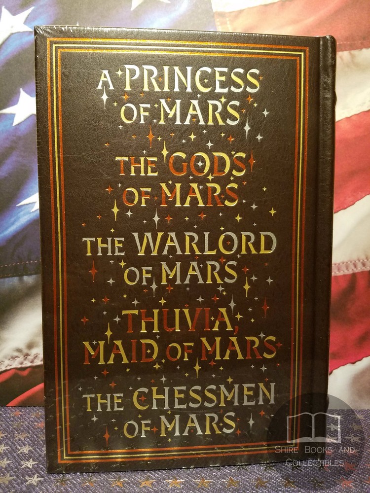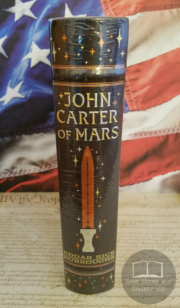 Edgar Rice Burroughs John Carter of Mars 5 Books in 1 Volume! First 5 Volumes in the John Carter Saga Special Bonded Leather Hardcover Collectible Edition BRAND NEW and SEALED!! Item Description This book is brand new and sealed , never read or used in any way, perfect condition. Beautiful gilt lettering and art design on the cover and spine Gold gilt page edges Satin ribbon book marker attached Bonded Leather bound hardback boards Exquisitely designed bonded-leather binding, with distinctive gilt edging and art design, and a ribbon bookmark. Decorative, durable, and collectible. "[Edgar Rice Burroughs created] an entire world with a history and variety of cultures on a scale that would not be repeated until J. R. R. Tolkien created Middle-earth." —Mike Ashley Interplanetary perils and swashbuckling adventures on the Red Planet await you in John Carter of Mars , a thrilling trio of science fantasy novels by Edgar Rice Burroughs. Written during the heyday of the pulp fiction era, these bestselling, epic blends of derring-do and dazzling romance permanently remapped the terrain of fantasy and science fiction. A Princess of Mars introduces officer John Carter, transported magically from Earth to Mars and plunged immediately into intrigues embroiling the Martian races. In the following novels The Gods of Mars, The Warlord of Mars, Thuvia, Maid of Mars , and The Chessmen of Mars , Burroughs elaborates his colorful vision of Mars as a home to fantastic fauna, airborne pirates, and battling tribes of nomadic, four-armed green Martian giants and city-dwelling red Martians. Already a seasoned swordsman, Carter becomes an even fiercer warrior, unfettered by the planet's lesser gravity. Thrust into one deadly battle after another as he seeks to woo the beautiful Dejah Thoris, Princess of Helium, John Carter of Mars magnificently meets his destiny as science fiction's first larger-than-life hero. This edition of the first five novels in the John Carter of Mars saga is a must have for any library! Shipping FREE Shipping within the continental USA will be via USPS Media Mail. Priority Mail is available for an extra $15 shipping charge. If you are from an American location that is not part of the continental USA , you will be required to pay for Priority Mail. I have set these locations as Exclusions, but I will be happy to remove the exclusions upon request and agreement to pay for the $15 for Priority Shipping. International Shipping will be via eBay Global Shipping Program. I use Media Mail to send to the Global Shipping center in Kentucky, however, if you wish for it to arrive at the center more quickly, you can add $15 to have it shipped there Priority. All of my books are shipped in sturdy, safe and secure boxes. Return Policy: Returned or exchanged items must be in original condition to qualify for a refund, and must be returned within 30 days from the purchase date. Customers are responsible for all return or exchange shipping charges. Once the returned item is received back to me and I can verify condition, I will process the Refund. Track Page Views With Auctiva's FREE Counter